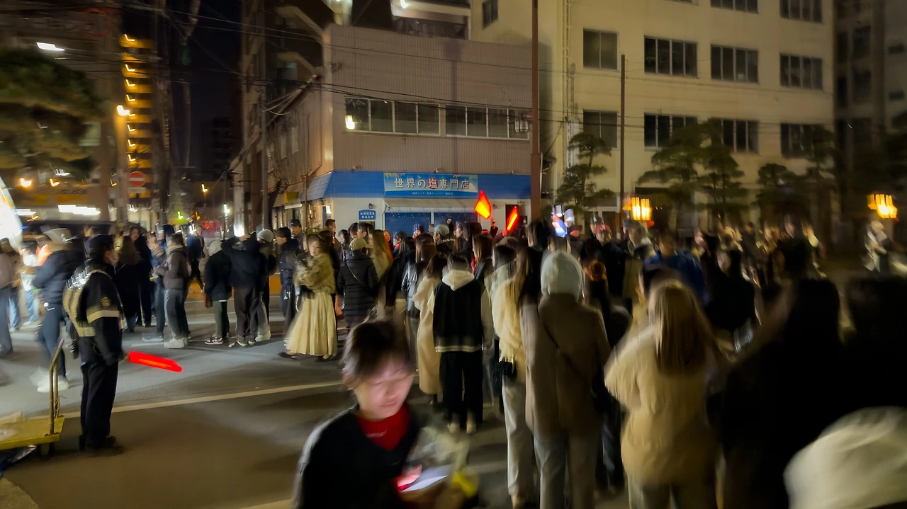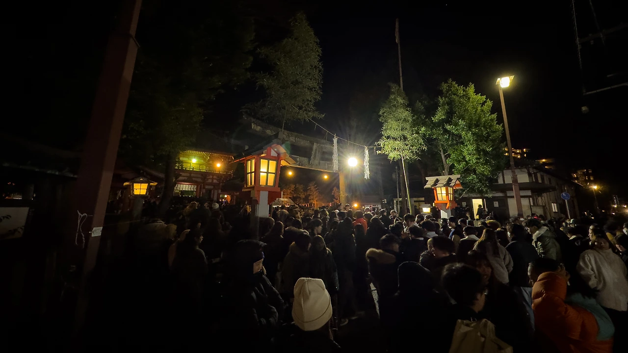 저는 신사에 들어가지는 않아도 되니까 신사 바로 앞쪽에서 카운트다운을 대기했습니다. 여기엔 올리지 않겠지만 2025년을 맞이하는 약 2분여의 시간을 촬영한 동영상도 있긴 하네요. 어쨌든 바로 이 장소에서 2025년 새해를 맞이했습니다. 약 10초 전부터 다 같이 큰 소리로 카운트다운을 했죠. 서울에 있었다면 종각에 나가지 않았을 텐데, 멀리 다른 곳에 와 있으니까 이런 것도 경험하게 되네요. 어쨌든 뭔가 색다른 2025년입니다.