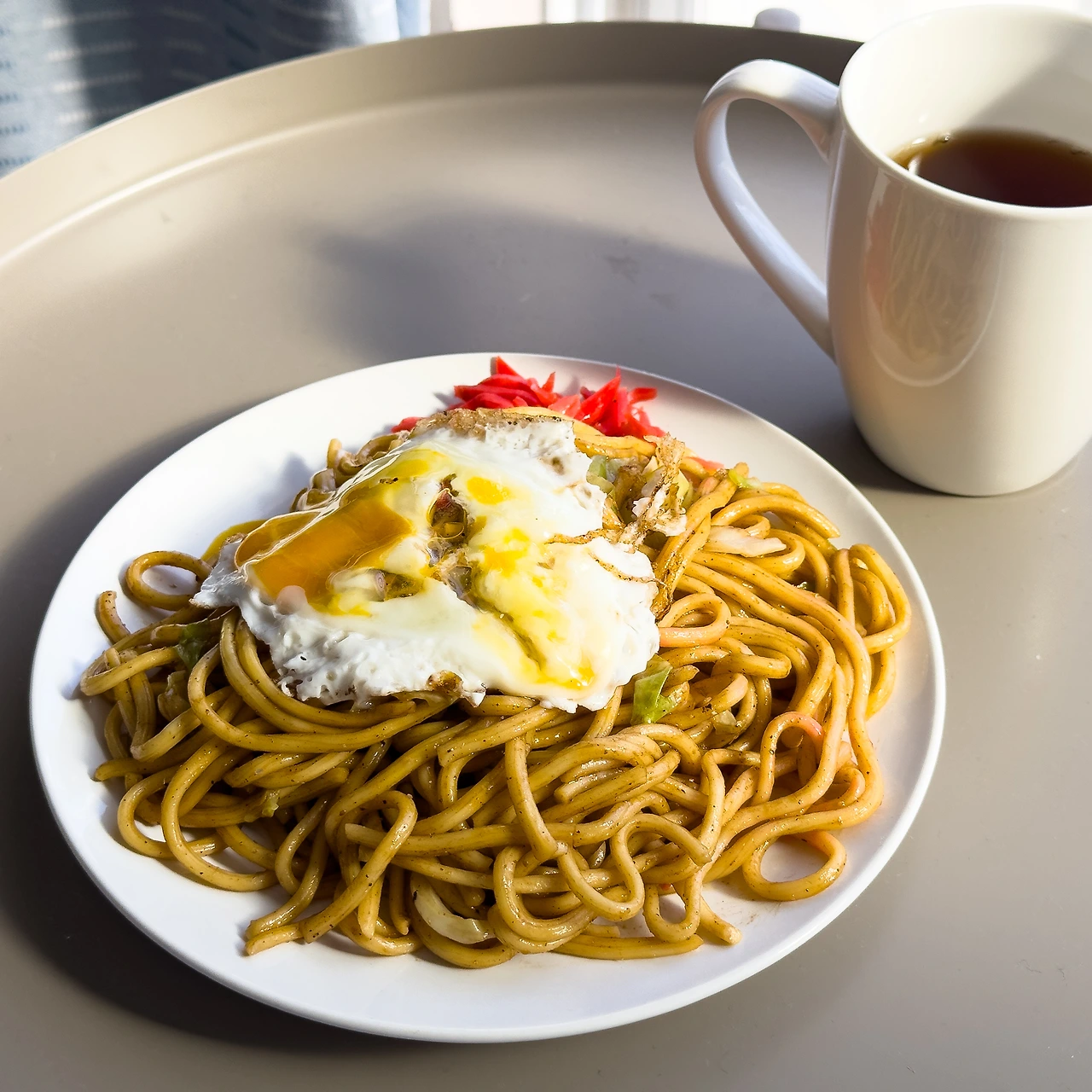 자연광을 맞아 마치 AI가 그려준 것 같은 분위기를 보여주는 야끼소바 한 그릇을 점심으로 먹으면서 1월 1일, 2025년의 새해 첫날을 맞이하고 있습니다. 서울이 아니라 구마모토라는 낯선 곳에 와서 말이죠.