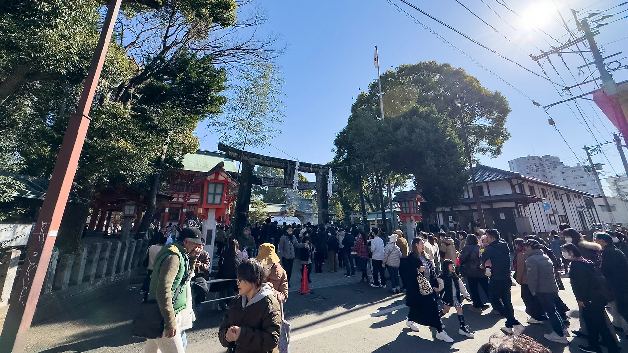 약 11시 즈음된 시간이었던 것 같은데요. 새해 첫 참배를 위한 행렬은 아침 일찍부터 계속 됐을 것 같습니다. 아침에도 줄이 길게 늘어서 있더라고요. 어젯밤만큼은 아니지만. 그리고 어젯밤과의 차이점은 확실히 아이를 동반한 가족이나 할머니, 할아버지들이 대부분이라는 겁니다. 정리해 보면 12월 31일 자정에 카운트다운하고서 바로 참배하고 술 마시러 가는 젊은이들도 있고, 1월 1일의 아침에는 가족 단위로 참배하러 오는 모양이네요.