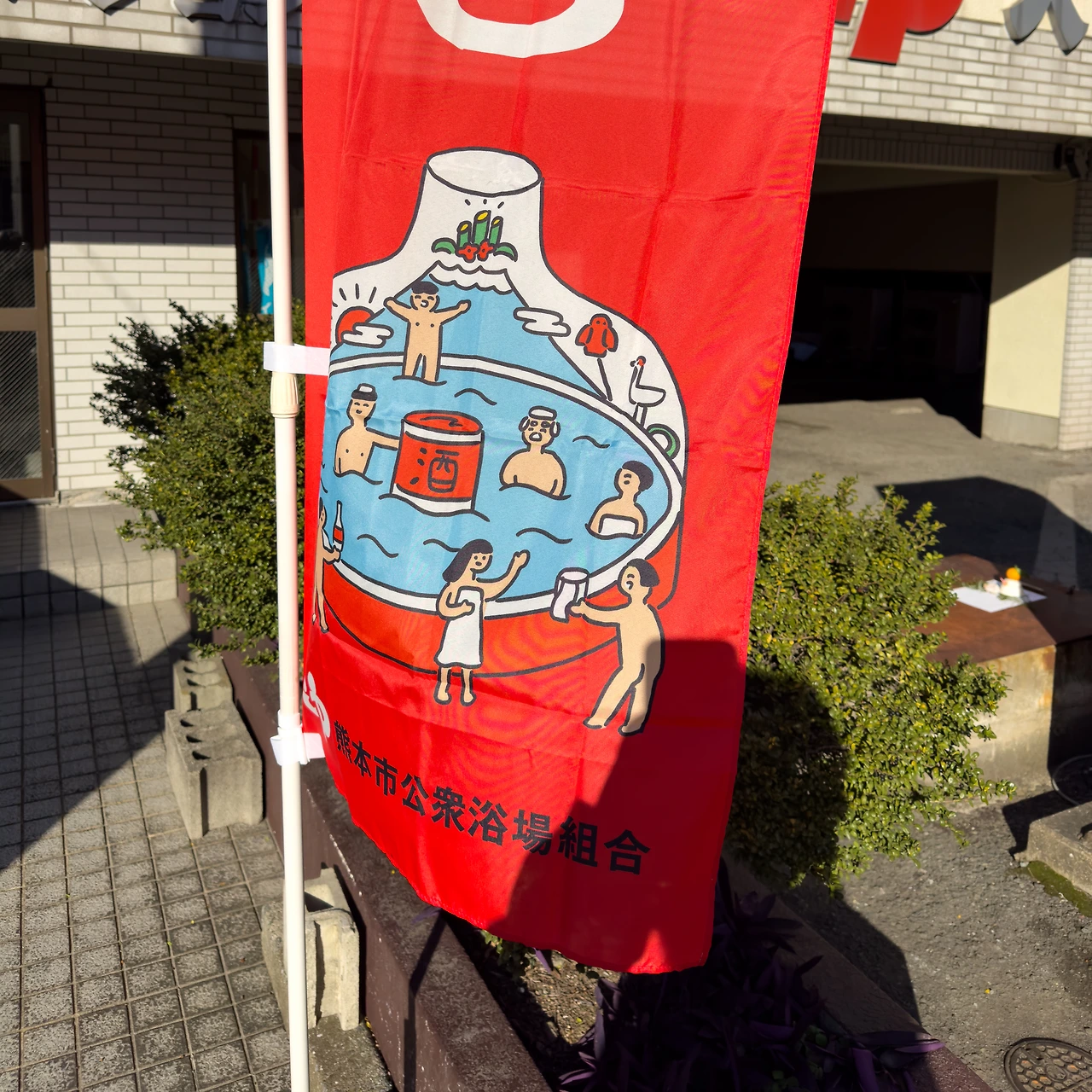 집, 아니 숙소 근처에 목욕탕도 하나 발견했습니다. 온천이 아니라 센토(銭湯)라고 불러야 정확하게 알아듣더군요. 어쨌든 구마모토시 공중욕탕조합의 깃발이 걸려 있습니다. 예전에도 한 번 소개한 적 있는 귀여운 홈페이지(http://kuma1010.com)를 가진 조합이에요. 아마 1월 3일에 술을 넣는 욕탕에 처음 술을 붓는 날인가 봅니다. 언젠가 방문해서 피로를 풀게 될 것 같은 목욕탕! 위치 체크!