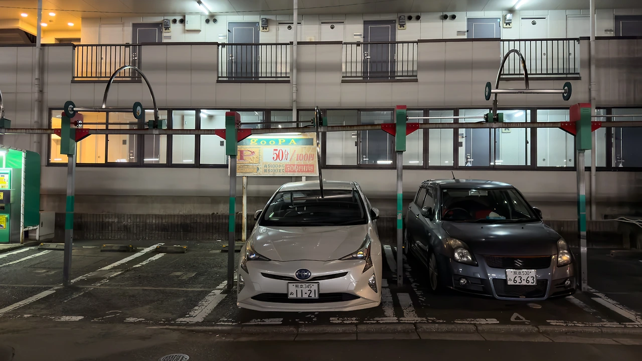 오늘은 좀 다른 길을 걸어 번화가 쪽으로 갑니다. 엄청 크고 화려한 주차 타워. 그리고 특이한 주차 관리 기계입니다. 구마모토에는 여기저기 주차장이 정말 많습니다. 주택이나 아파트, 맨션에도 웬만하면 주차장이 갖춰져 있는 느낌이고요. 아무래도 생활에 차가 밀접하게 필요한 모양입니다.