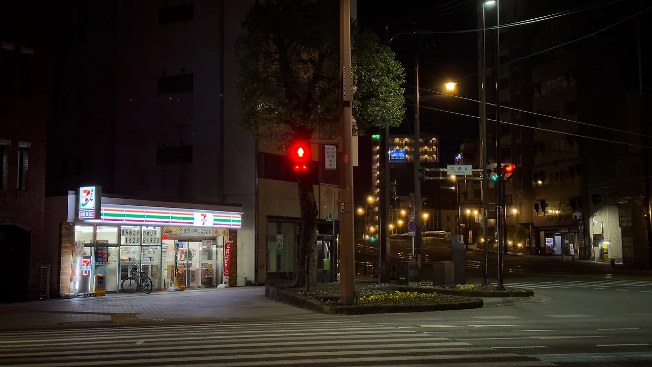 새벽 몇 시였을까요? 내일을 기약하며 일어나서 집 방향으로 걸어오면서 구마모토의 밤거리 사진들을 찍었습니다. 그렇게 오늘 하루를 마무리했어요.