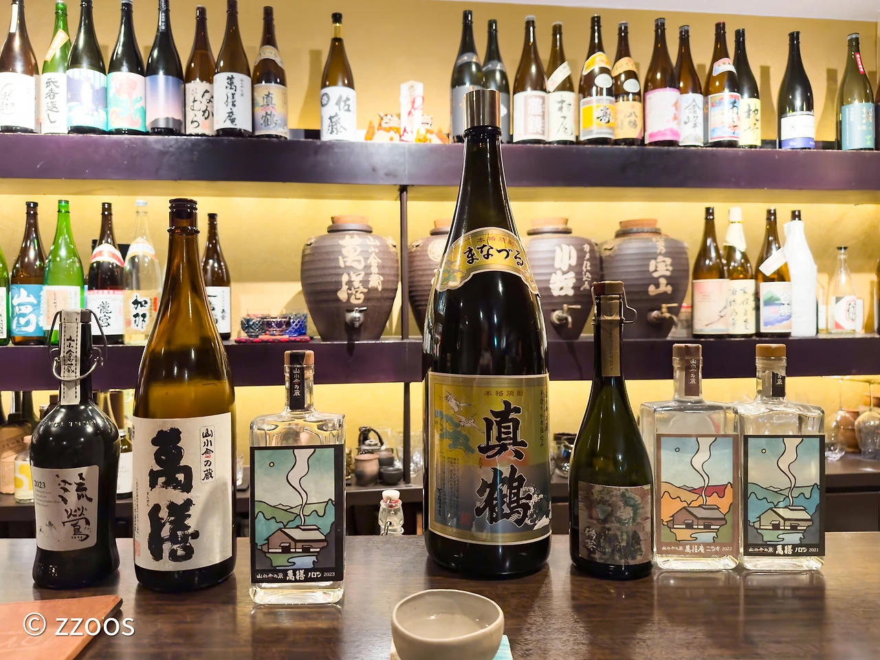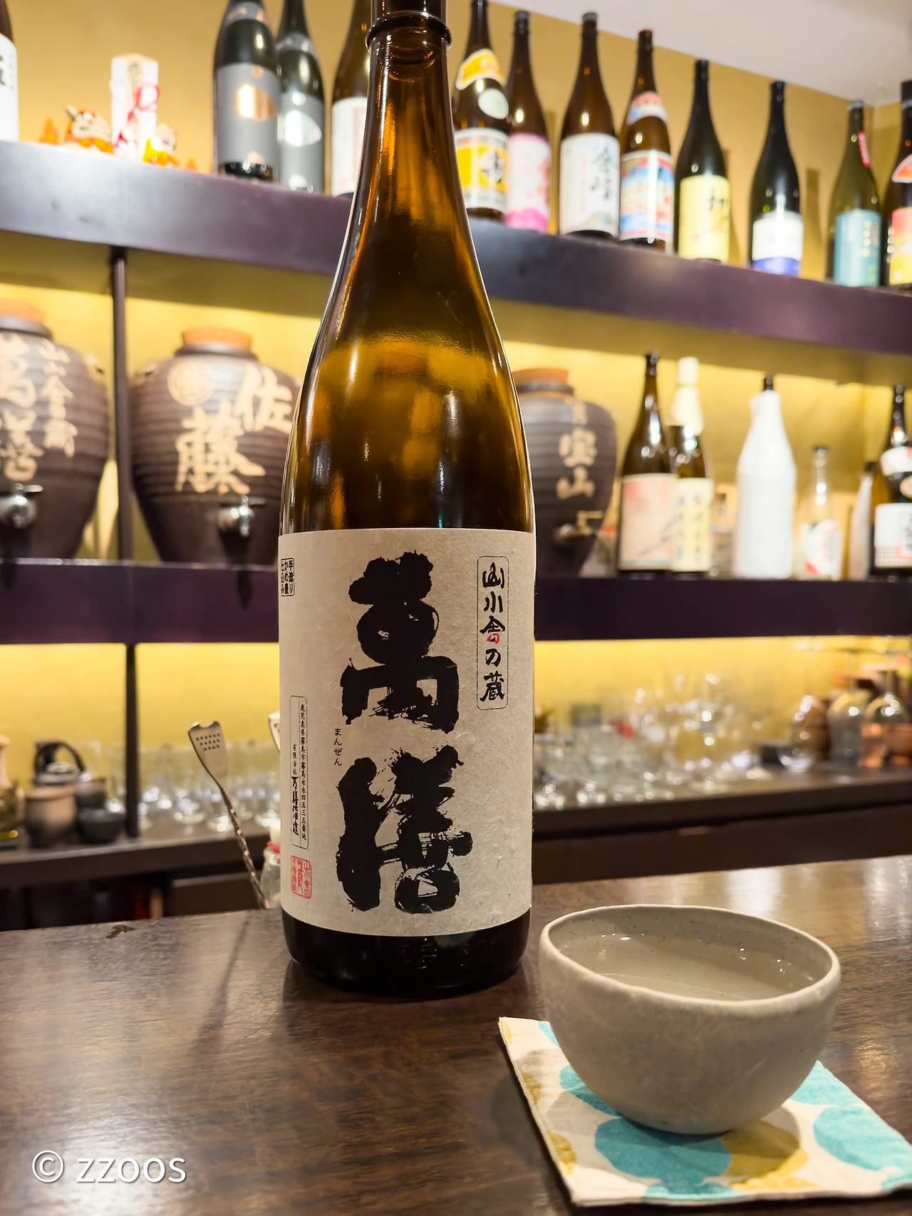 이곳 마스터 덕분에 만젠의 팬이 되어 버렸습니다. 그 얘기를 꺼냈더니 만젠의 빈티지 보틀을 꺼내오십니다. 당연히(?) 한 잔 마셨죠. 어라? 보틀이 자꾸 나옵니다. 만젠의 빈티지 보틀 3병(한 병은 만젠안이긴 하지만)과 백누룩인 미즈타케의 큰 병(5년 숙성한 것), 만젠의 겐슈(원주, 물을 섞지 않은 것) 등등 전부 꺼내오시고서는 ‘이것이 만젠의 전부입니다!‘라고 뿌듯하게 말씀하시네요. ㅎㅎㅎ