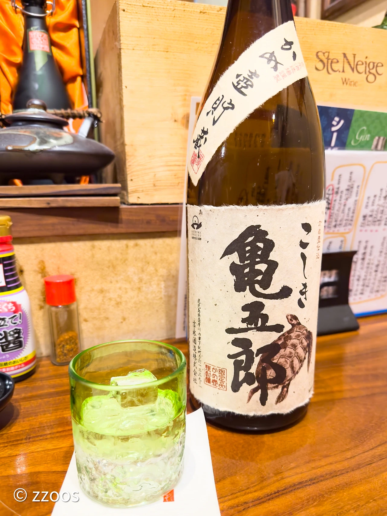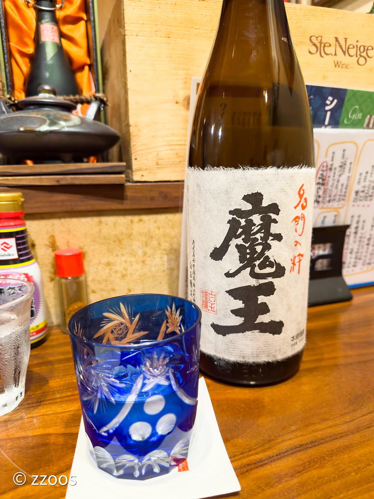 2차이자 가고시마 여행에서의 마지막 쇼츄를 마실 가게는 역시 SAO입니다. 이번 가고시마 여행 3일 모두 방문한 곳이네요. 앉자마자 첫 잔으로 만젠의 마에와리를 마십니다.