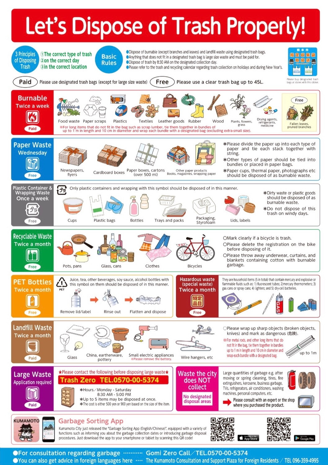 자, 구마모토에서는 아직 2주 이상을 지내야 하고, 가고시마에 내려가기 전에도 약 일주일 정도 지냈기 때문에 쓰레기가 많이 쌓였습니다. 그래서 가고시마에서 돌아오자마자 쓰레기 배출 방법을 여기저기서 알아봤습니다.