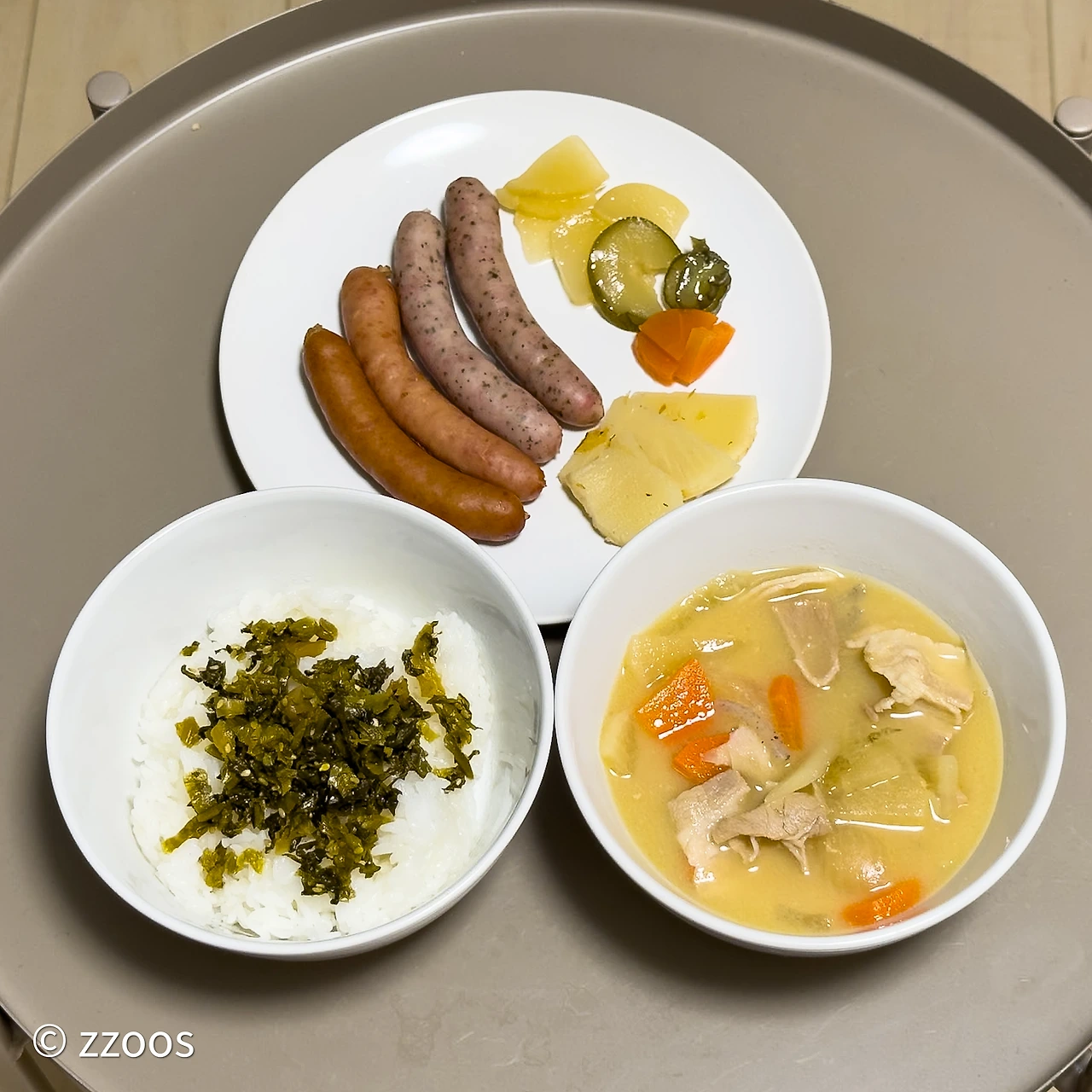 그래서 편의점으로 갔습니다. 술이 덜 깼는지 속도 별로 안 좋아서 돈지루(돼지고기 국)를 하나 사고, 소세지를 사이드로 샀습니다. 그냥 즉석 미소국으로는 해장할 수 없을 것 같았습니다. 뜨끈한 돈지루라면 속이 좀 풀릴 것 같았어요.