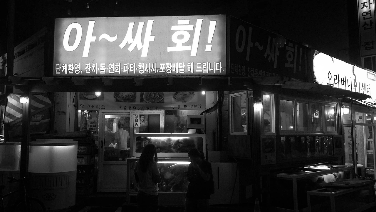 1차를 마치고 나서 2차는 그냥 숙소에서 해결하자는 대세에 따라 숙소 근처에서 간단하게 한치회를 좀 샀다. 횟집 이름이 아~싸 회! 중의적인 의미가 느껴진다.