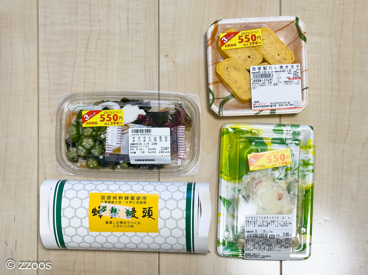 사쿠라 마치 지하의 도시락 가게에서 3개 550엔으로 할인하는 품목을 발견했습니다. 오크라 샐러드와 계란말이 그리고 감자 샐러드. 계란말이와 감자 샐러드는 저녁으로 바로 먹어치웠네요.