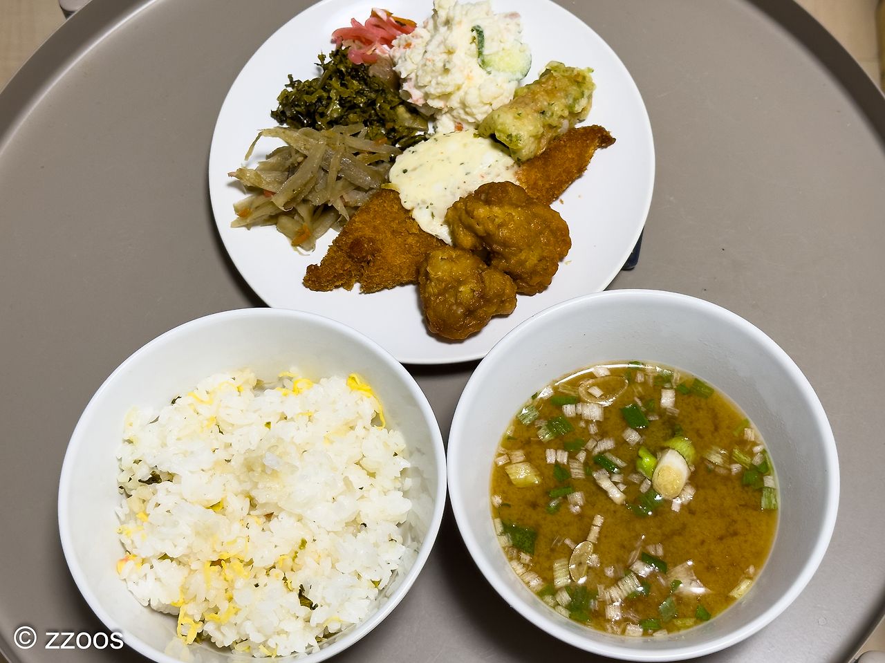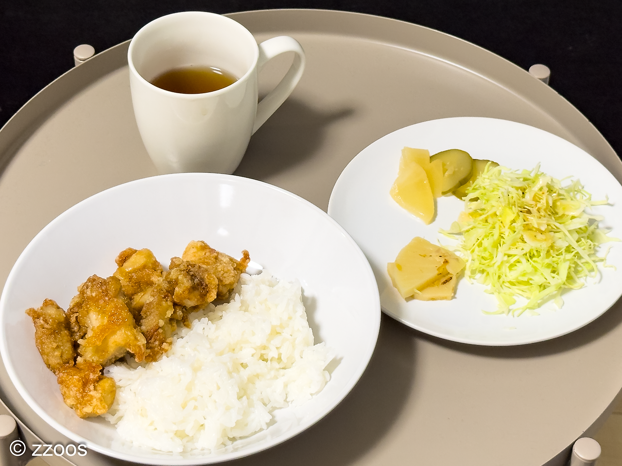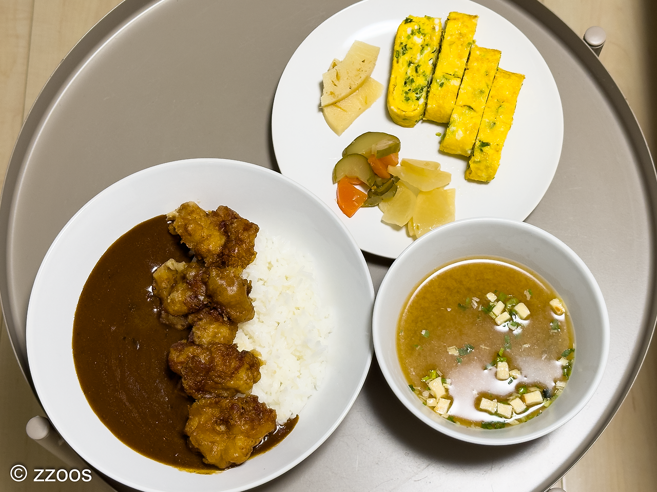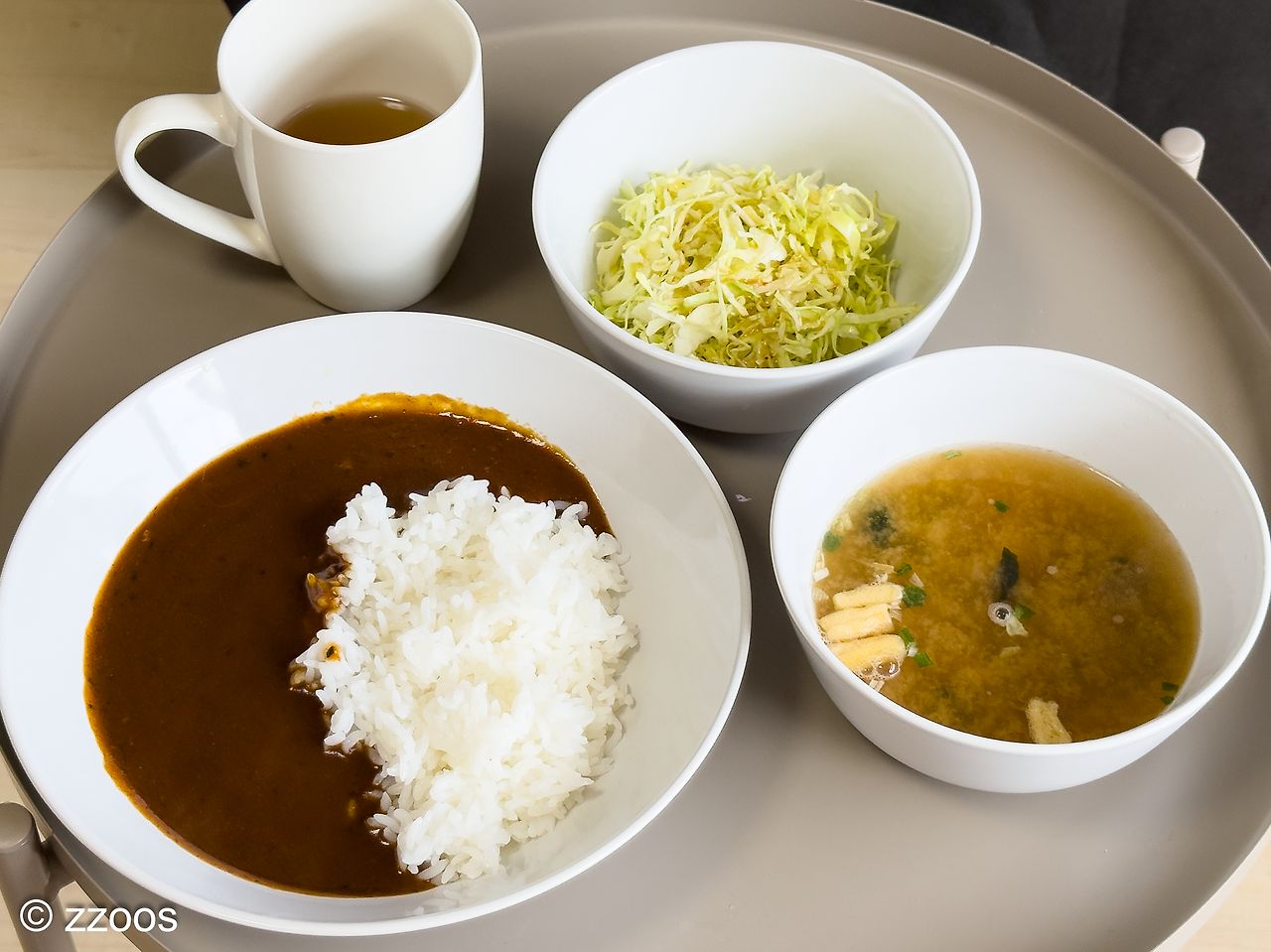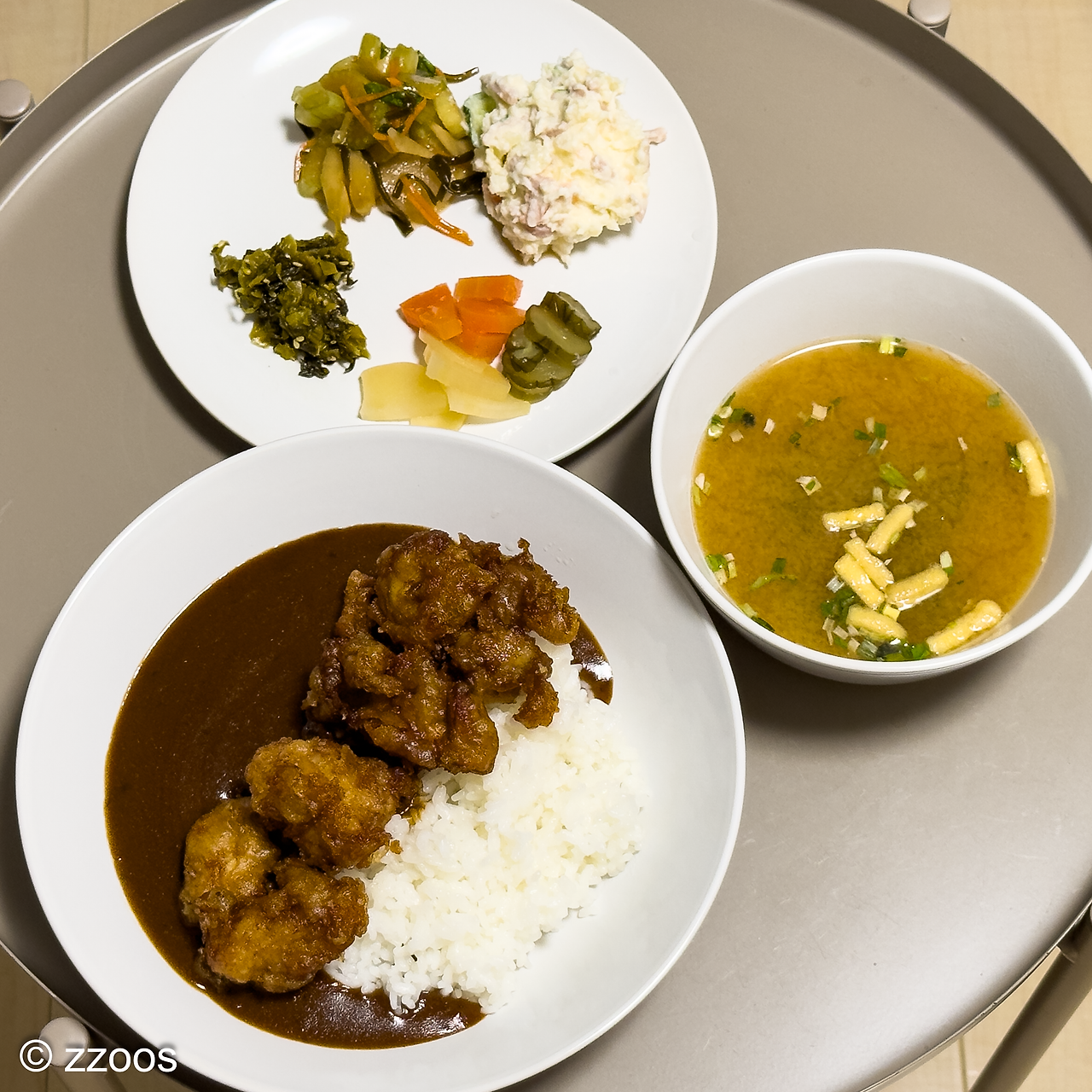 그리고 드디어 마음에 드는 식사의 스타일을 찾았습니다. 아마 여행 중 가장 많이 먹은 밥일 텐데요. 가라아게를 사다가 카레와 같이 먹는 거예요. 일종의 치킨 카레네요. 거기에 즉석 미소시루랑 냉장고에 채워둔 쯔께모노가 있으면 한 끼 뚝딱입니다. 기왕이면 샐러드 같은 것이 하나 있으면 좋고요.