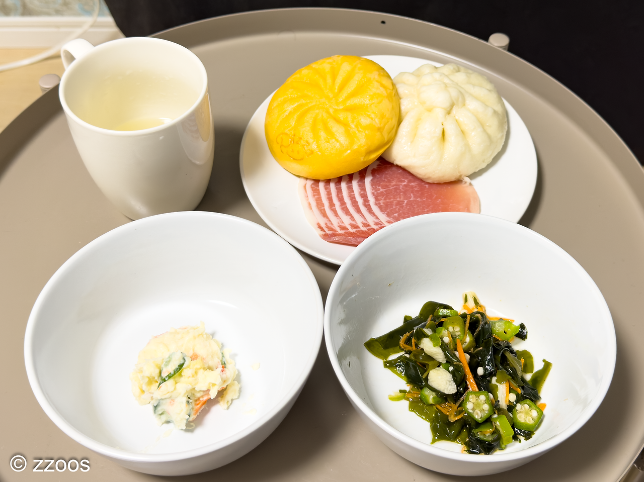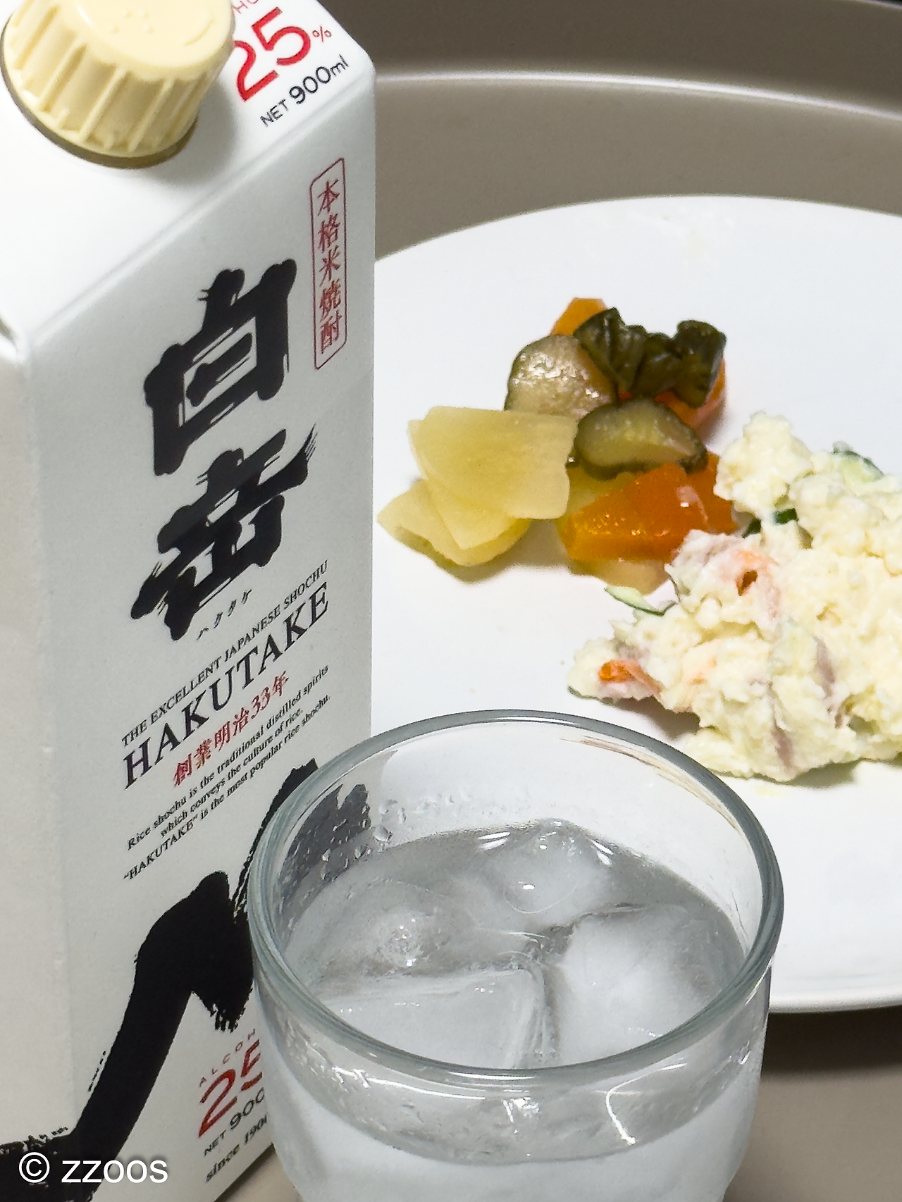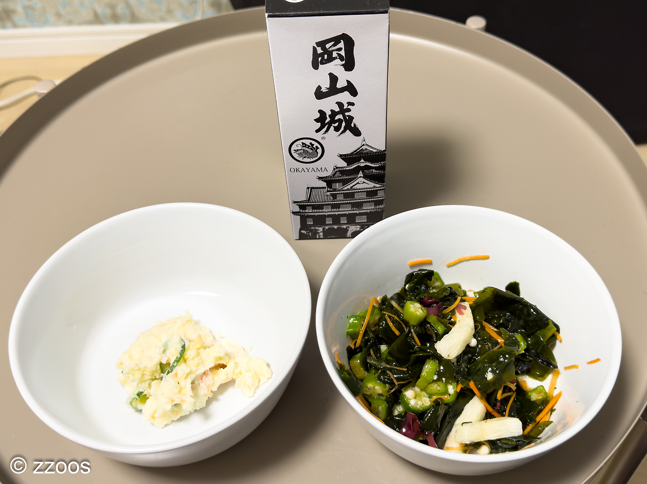 슬슬 여행의 끝이 보이니까 냉장고에 들어있는 것들을 해치우고 있습니다. 오크라 샐러드는 안주로, 남은 감자 샐러드도 꺼내서 츠노다 상에게 선물 받은 오카야마(岡山)의 지자케(地酒)를 마십니다. 그러다가 필 받아서 남아 있던 생햄도 꺼내고 고기 호빵이랑 피자 호빵까지 추가했군요. 이후에는 장을 보기보다는 집에 남아 있는 것들을 먹고 마셨습니다.