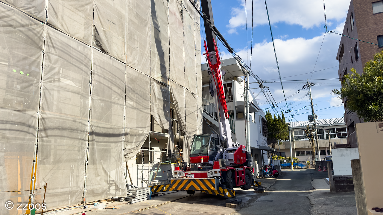 가고시마 여행을 마치고 돌아오는 길, 집 앞에서 깜짝 놀랄만한 것을 봐버렸습니다. 분명히 공사장이라는 것은 알고 있었지만 소음은 못 들었거든요? 그게 당연했던 것이, 그동안은 연말연시라서 공사 자체를 쉬고 있었던 겁니다. 1월 9일 날 가고시마에서 돌아왔으니까, 이제는 공사를 다시 진행하고 있는 거죠. 그래서 돌아올 때까지 집에서 쉬려고 하면 공사 소음과 함께 쉬어야 했습니다. 뭐, 제가 예민하지 않아서 그런지 별로 불편함은 없었어요.