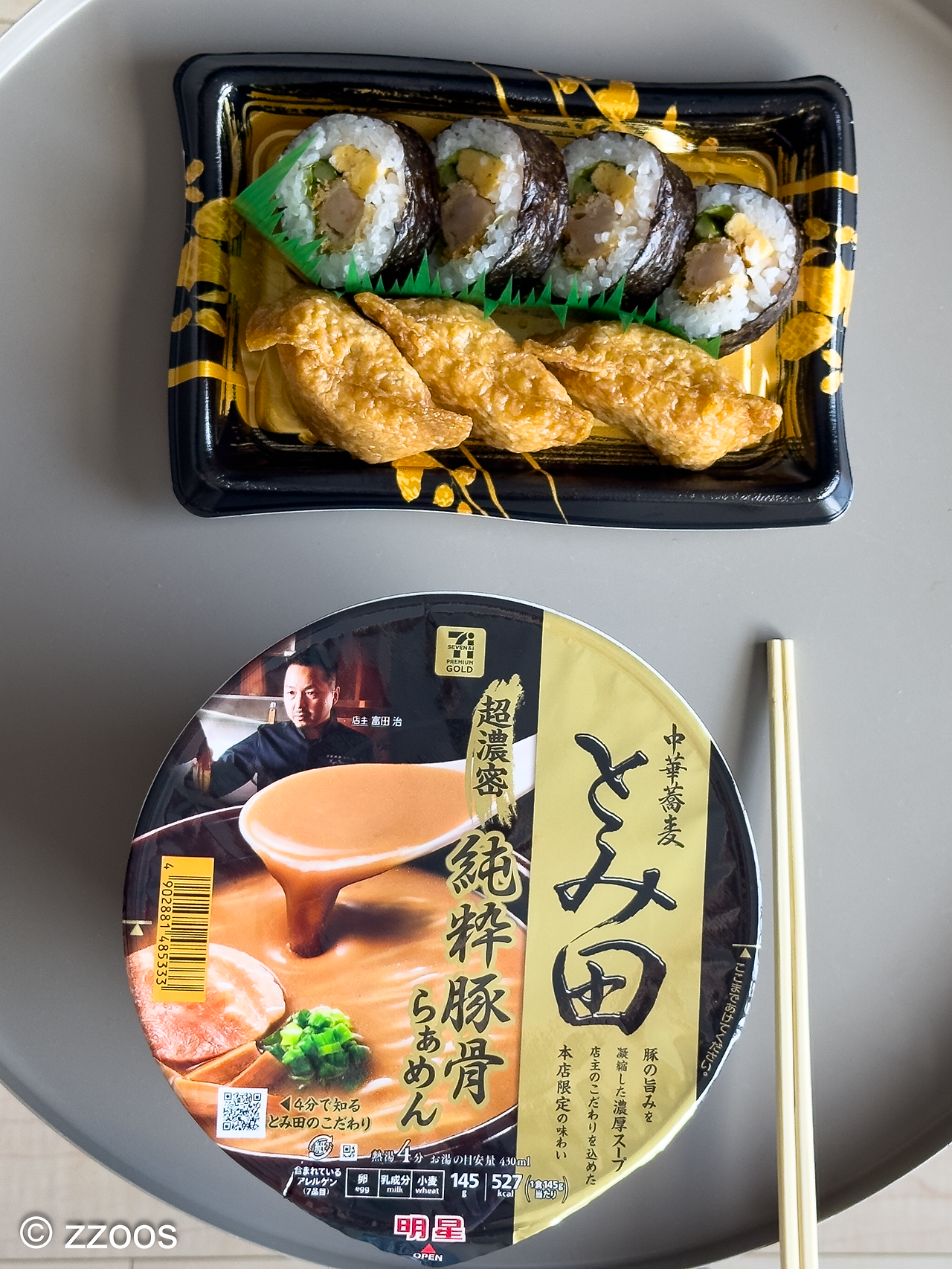 맨날 즉석 미소시루만 먹으면 지겨워져서 어떤 날은 편의점에서 돈지루를 사다가 먹기도 합니다. 가라아게 대신 함박 스테이크를 사다 먹은 적도 있군요.