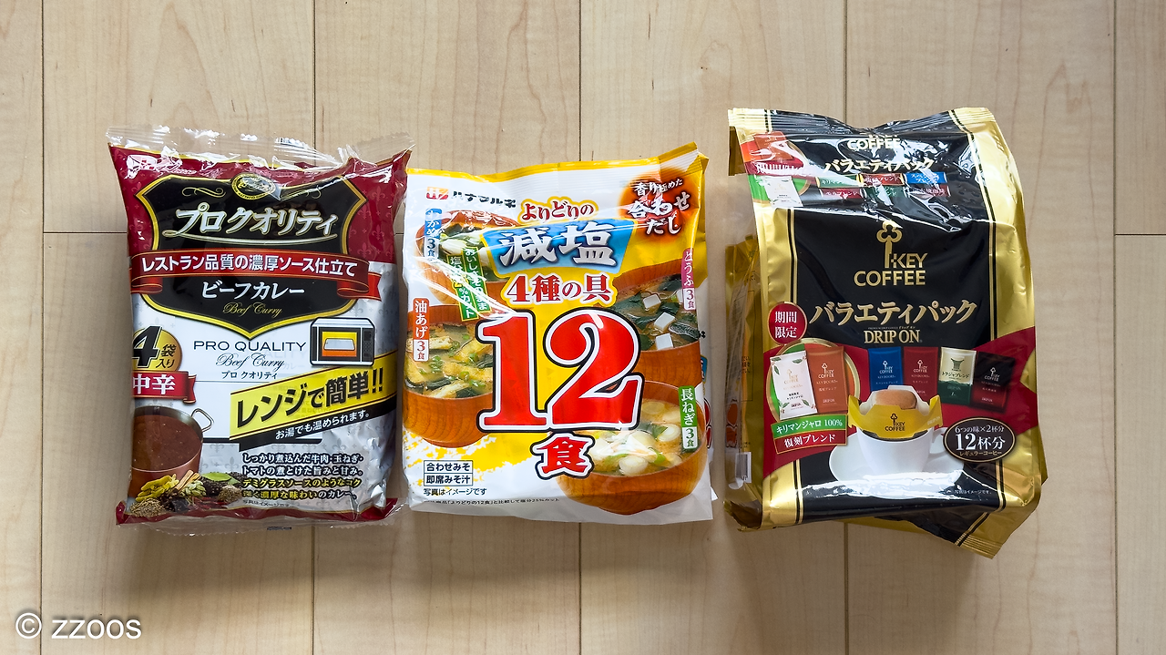 사쿠라마치 지하의 슈퍼에 가서는 다른 곳에서 구할 수 없었던 저렴한 즉석 미소시루를 찾았습니다. 사는 김에 즉석 카레랑 드립백을 같이 샀어요. 아마 이 정도가 가장 먼저 준비해 둔 것들일 겁니다.