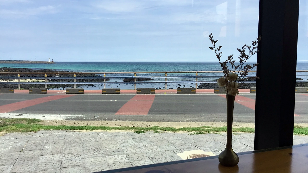 말 그대로 월정리를 '벗어나기만' 하면 차량이 확 줄어들고 다시 한적해진다. 하지만 해안도로를 따라 에메랄드빛 바다는 계속되고, 간간히 예쁜 카페들이 보인다.