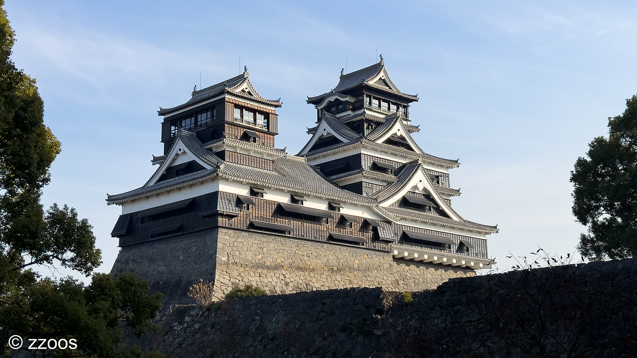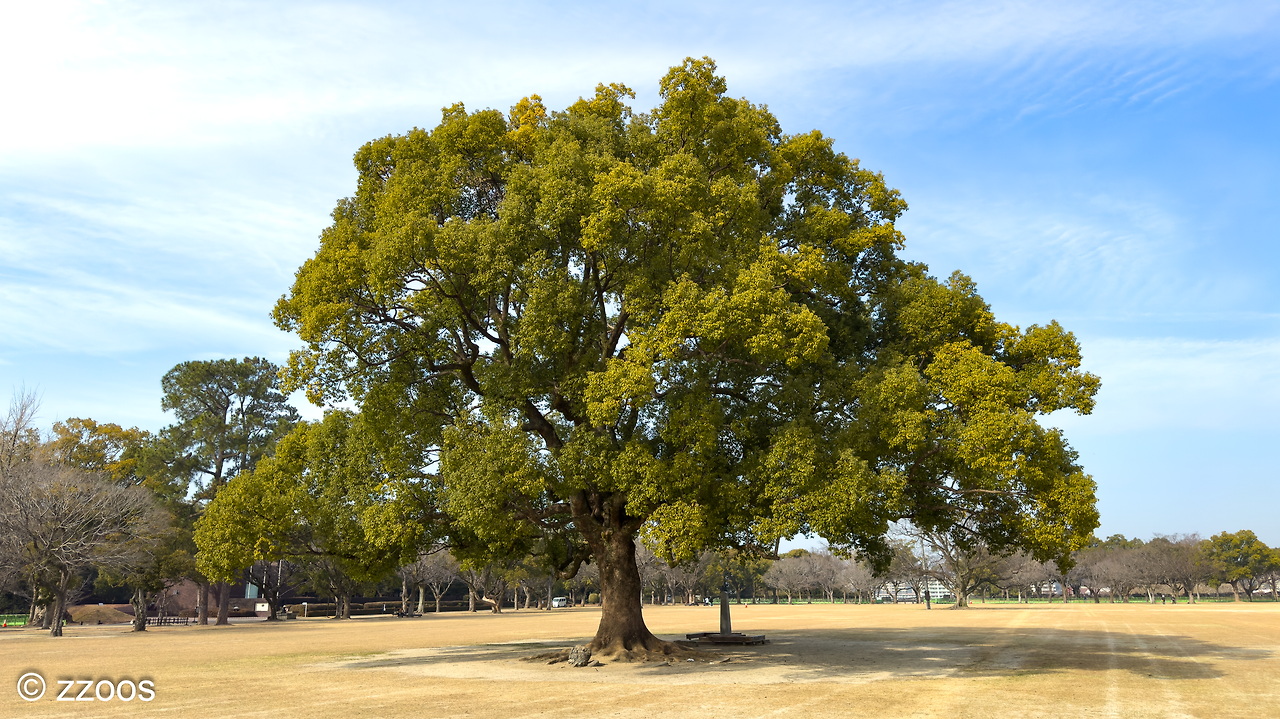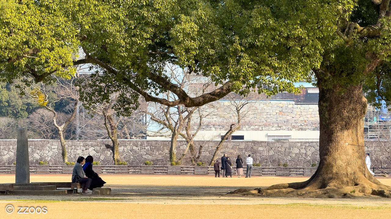 한 여름에 오면 넓은 니노마루 광장에 파란 잔디가 가득하려나요? 그러고 보니 한겨울인데도 푸르른 나무가 많습니다. 우리나라에서는 상록수라고 하면 소나무를 떠올리게 마련인데 구마모토의 상록수는 침엽수가 아니라 활엽수인가 봅니다.