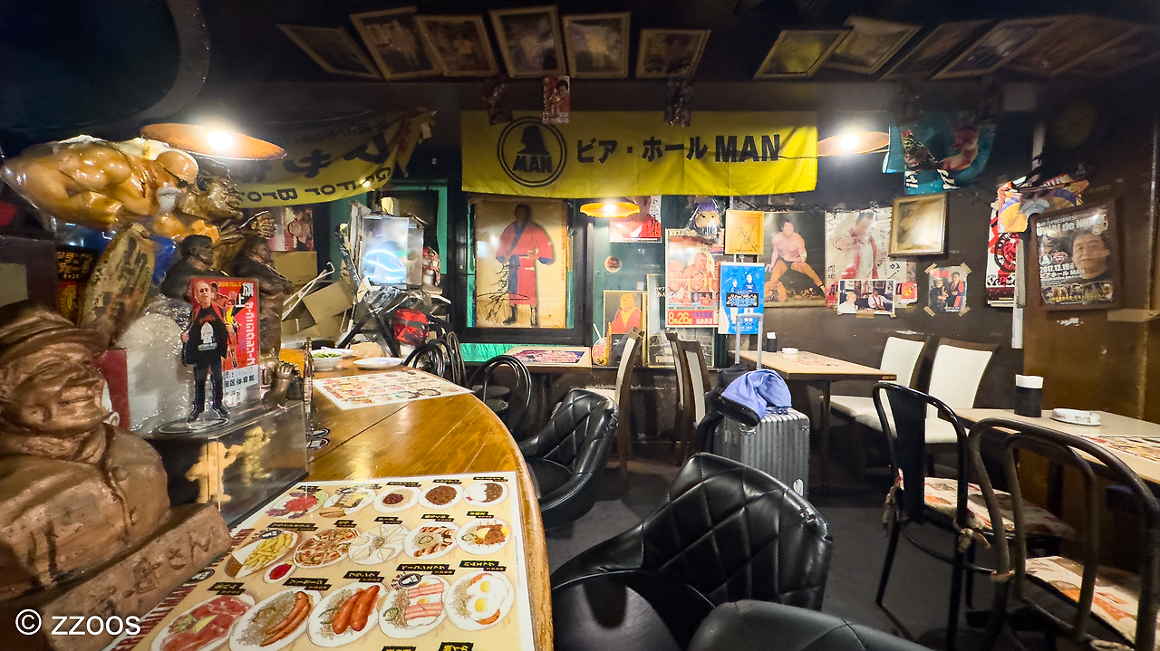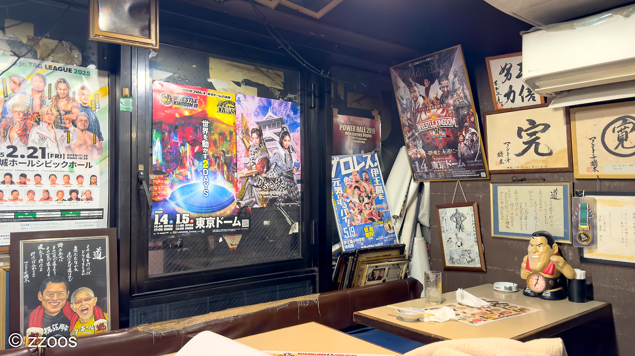 일단 가게를 둘러보면 굉장히 오래된 세월의 흔적이 느껴집니다. 그리고 가게에 꽉! 들어찬 프로레슬링. 일본에서는 아직 프로레슬링의 인기가 살아 있다고 하네요. 이곳은 쥔장이 프로레슬링을 워낙 좋아하기도 하고, 실제로 프로레슬러들이 자주 찾는 집이라고 합니다.