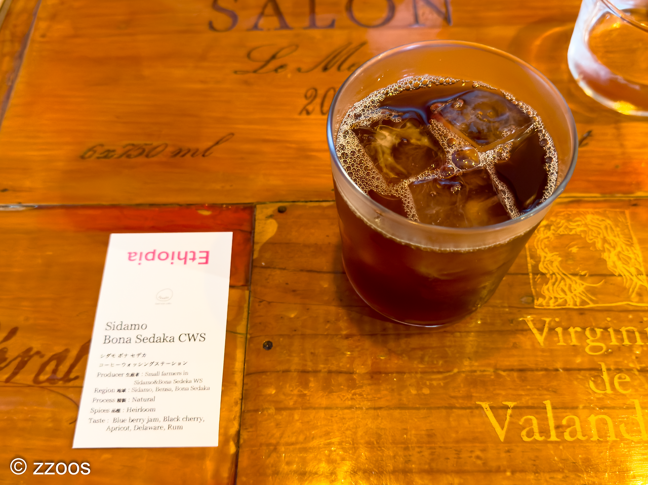 식사를 마치니까 커피를 내주십니다. 처음 주문할 때 모두 함께 주문했어요. 커피 원두는 세 종류가 있었는데 저는 에티오피아로 골랐습니다. 말코닉 그라인더로 바로 갈아서 핸드드립으로 내려주시는 줄 알았다면, 온도가 낮게 서빙되는 와인을 마시게 될 줄 알았다면 굳이 아이스커피로 주문하지 않았을 텐데...