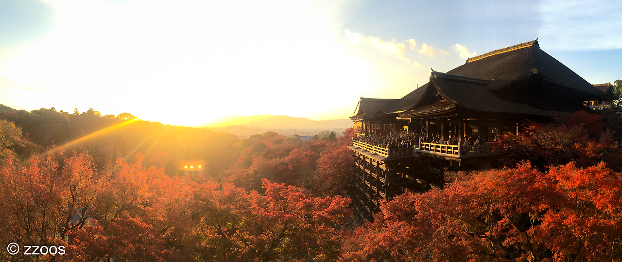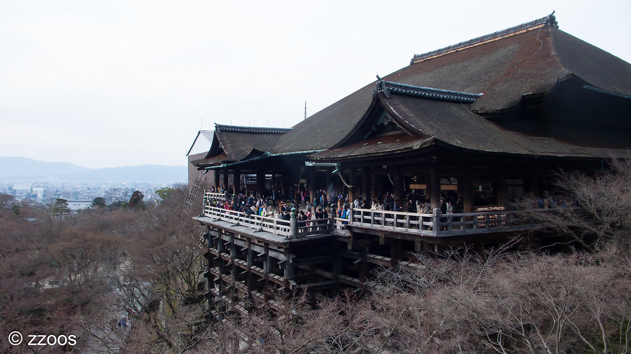 물론 청수사로 올라가는 길, 니넨자카(二寧坂)나 산넨자카(産寧坂)가 있는 골목의 분위기도 좋지만 역시 가장 좋아하는 풍경은 사진의 본당 풍경이죠.