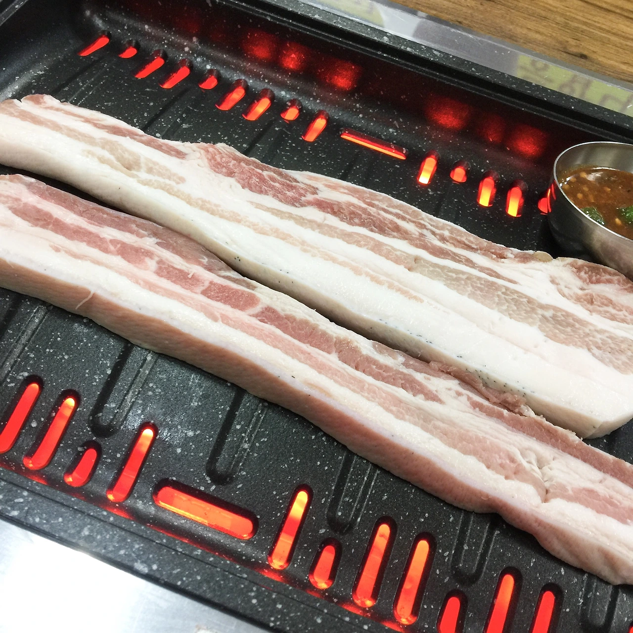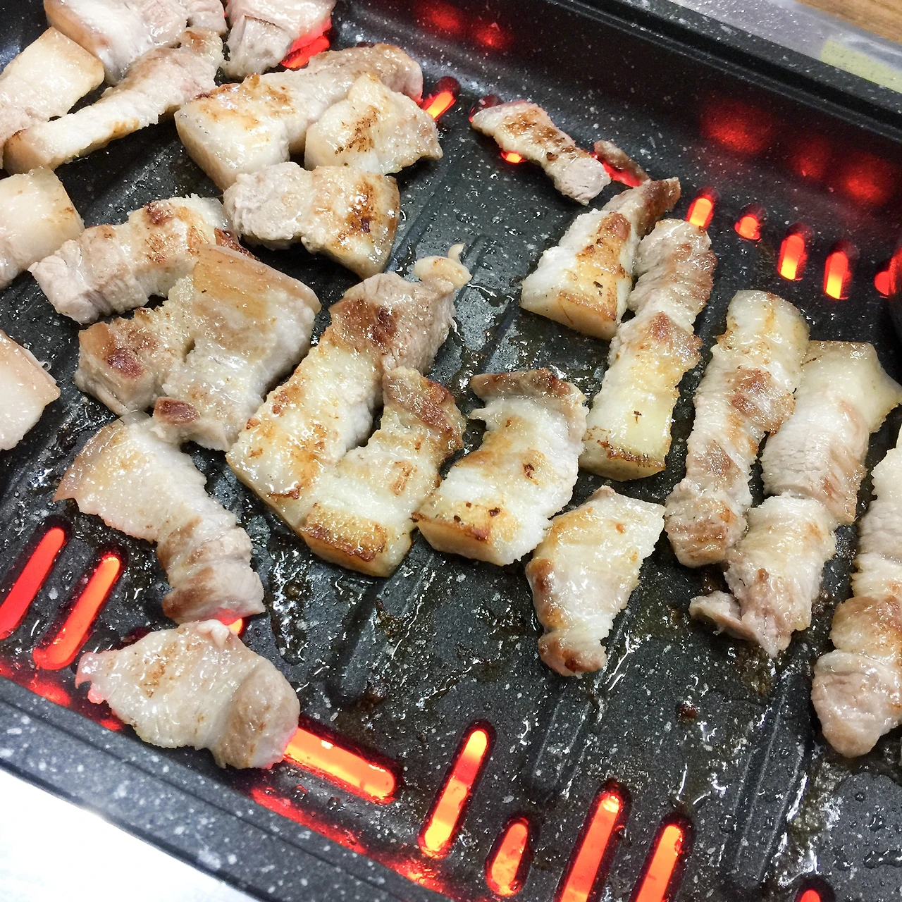 그래서 결국 흑돼지 오겹살을 먹기로 했다. 해비치 앞의 식당들은 뭐 다 비슷비슷해 보였다. 실제로 고기도 뭐 그냥 평범한 정도. 친구도 나처럼 입이 짧아서 2인분만 먹고 나왔다.