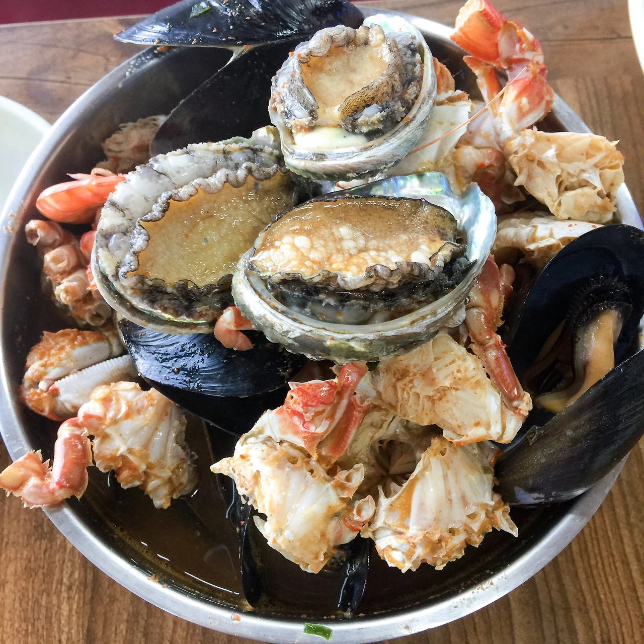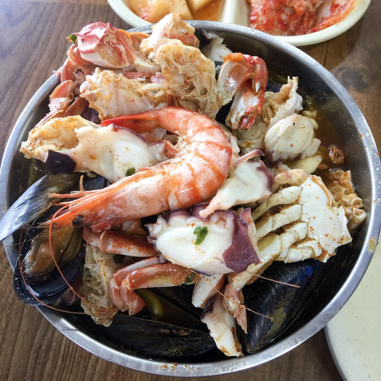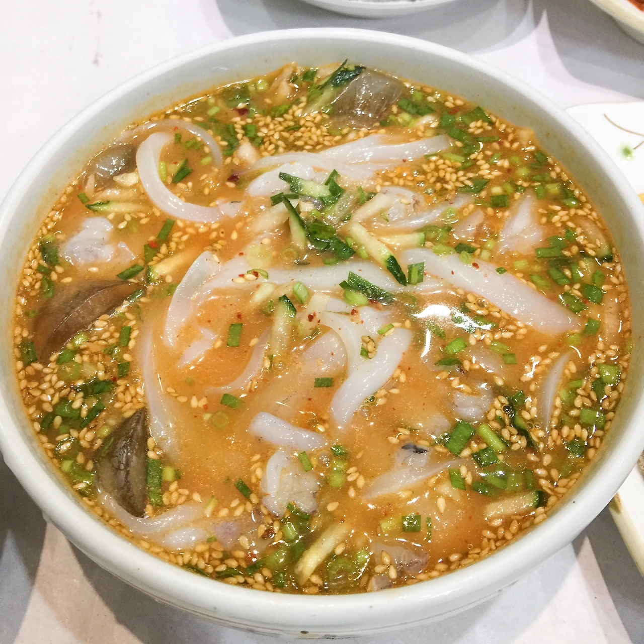 뽀얀 한치가 가득 들었고, 된장을 베이스로 했지만 고춧가루가 함께 들어가서 묘한 빛깔이 나는 한치 물회. 양도 엄청나다.
