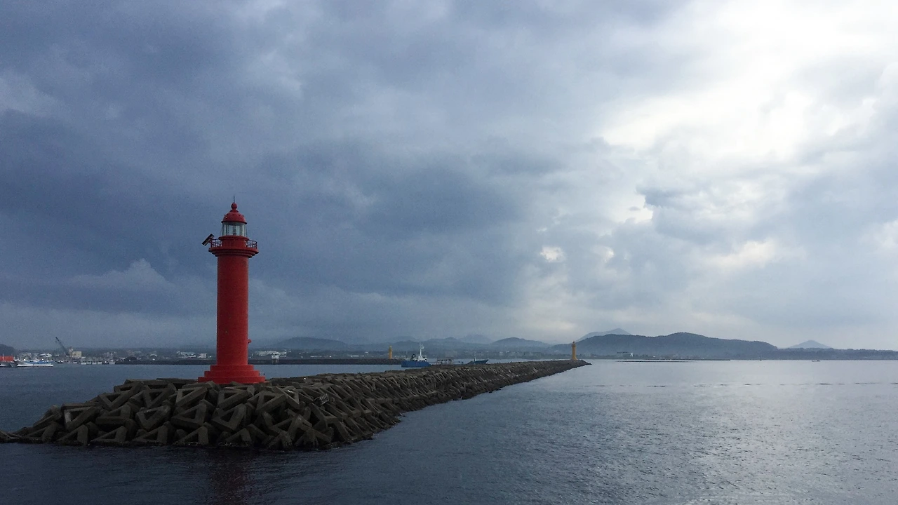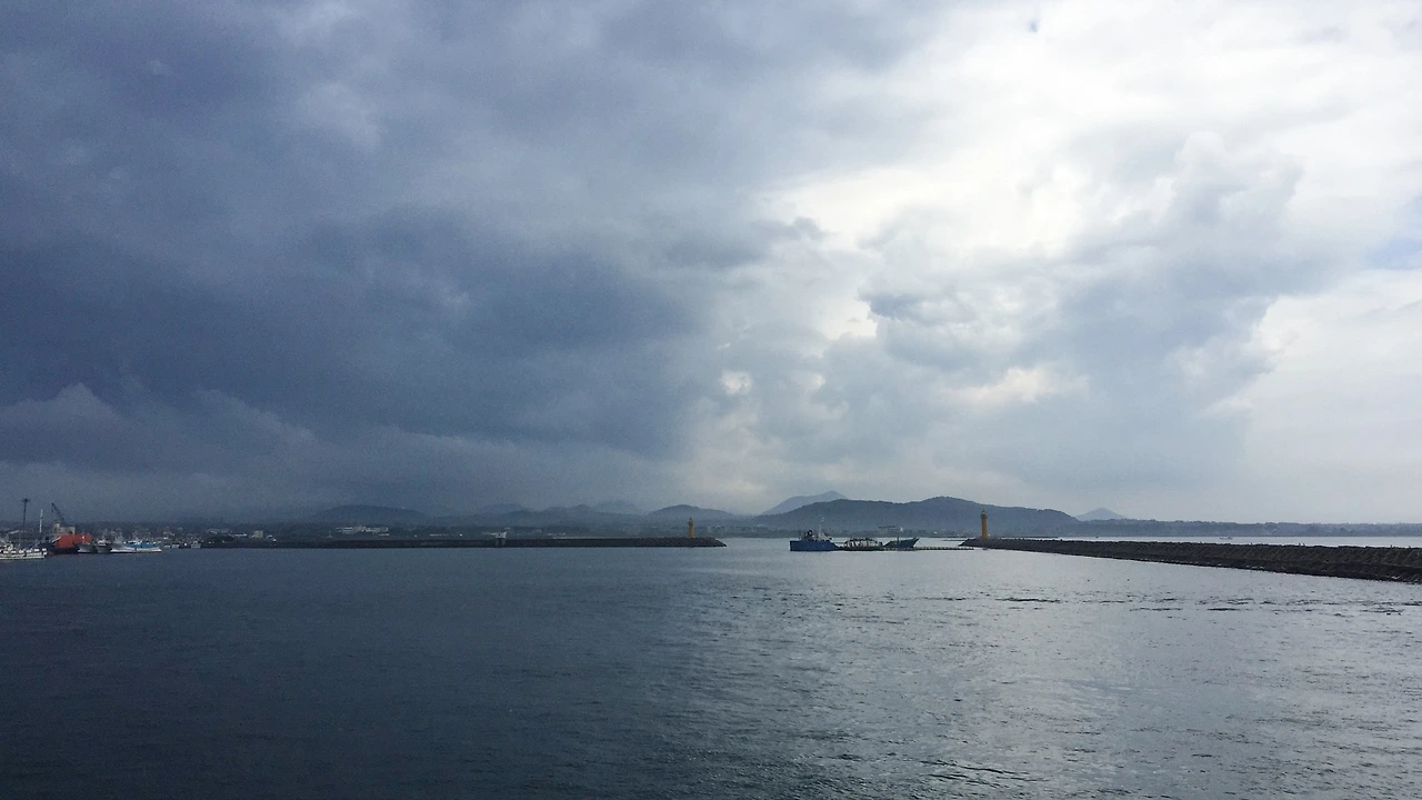 약 한 시간 동안 카페에서 비가 그치기를 기다렸지만 비와 번개는 잦아들기는커녕 더욱 거세질 뿐이었다. 그래서 우리는 과감하게 우도를 포기하기로 했다. 우도사랑 2호를 타고 우도를 빠져나오다가 바라본 하늘. 정말 하늘이 회오리쳐서 우도로 떨어져 내리고 있는 것처럼 드라마틱한 구름이었다.