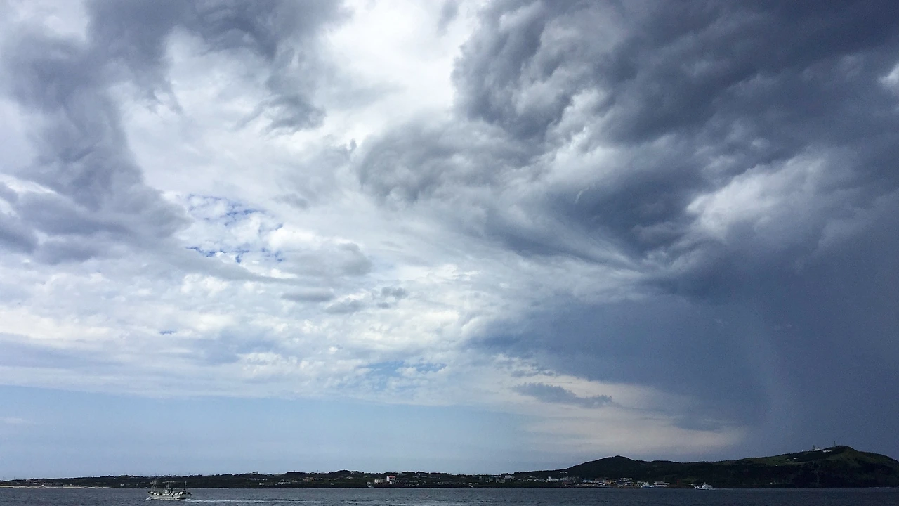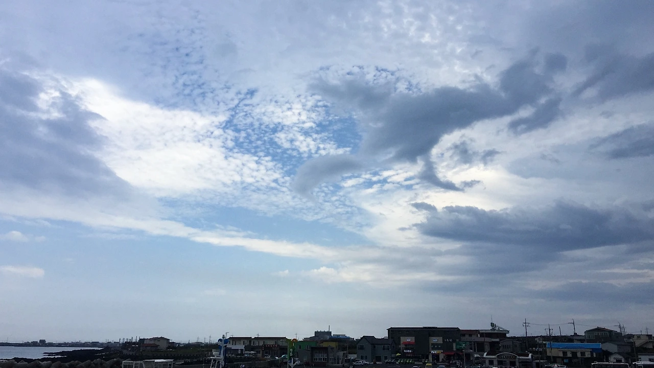 우도의 하늘. 시커먼 색과 파란색이 뒤엉켜 있다. 과연 우도의 날씨는 어떻게 될 것인가.