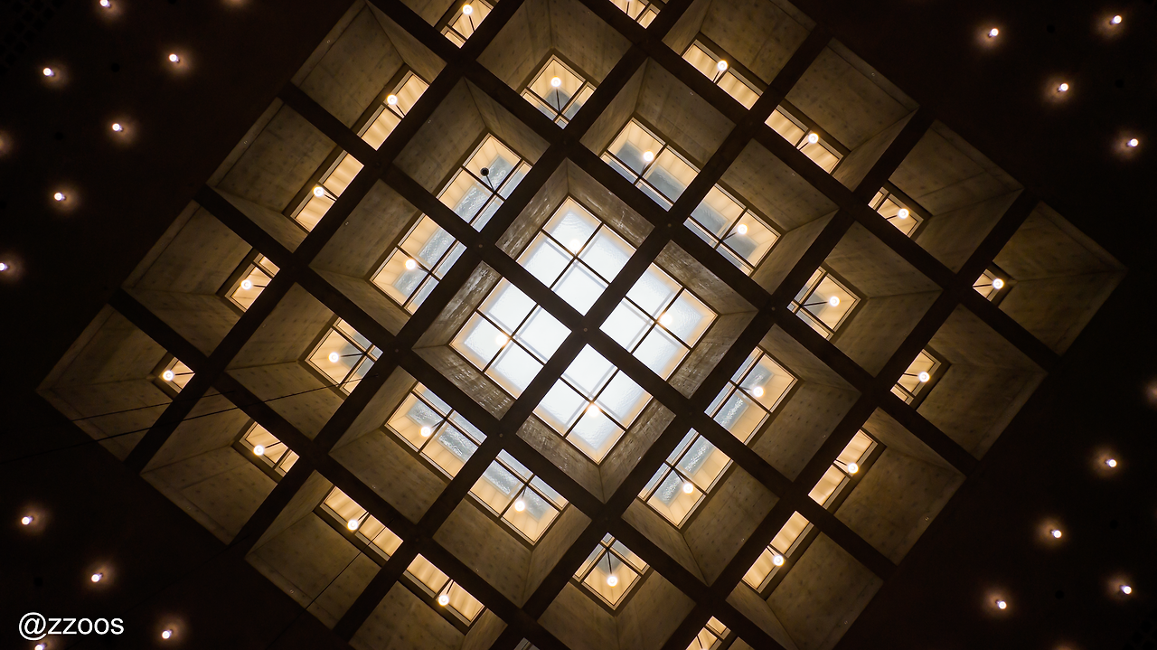 그리고 고개를 들어 천장을 봅니다. 친구가 입이 마르도록 자랑하던 바로 그 천창입니다. 시공도 아주 어려웠다고 하던데요. 천창 위에는 물이 흐르네요. 흐르는 물 때문에 빛이 찰랑거리는 느낌이 듭니다.