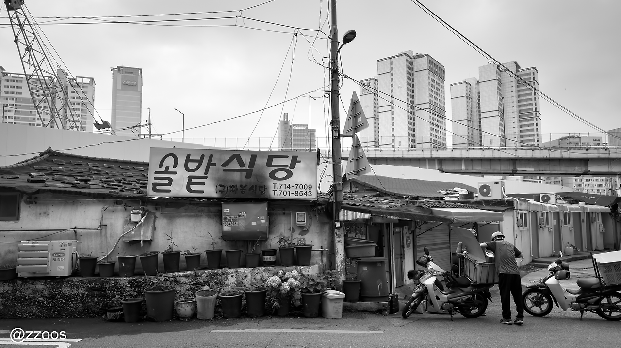 기분 좋은 식사를 마치고 가게를 나섰습니다. 이제 전시를 보러 가야죠. 일부러 작은 골목으로 들어섭니다. 용산이라는 동네의 특징을 보여주듯 오래된 건물들이 보입니다. 아, 물론 사진에 찍히지 않은 쪽은 새로 지은 고층 아파트지만 말이죠.