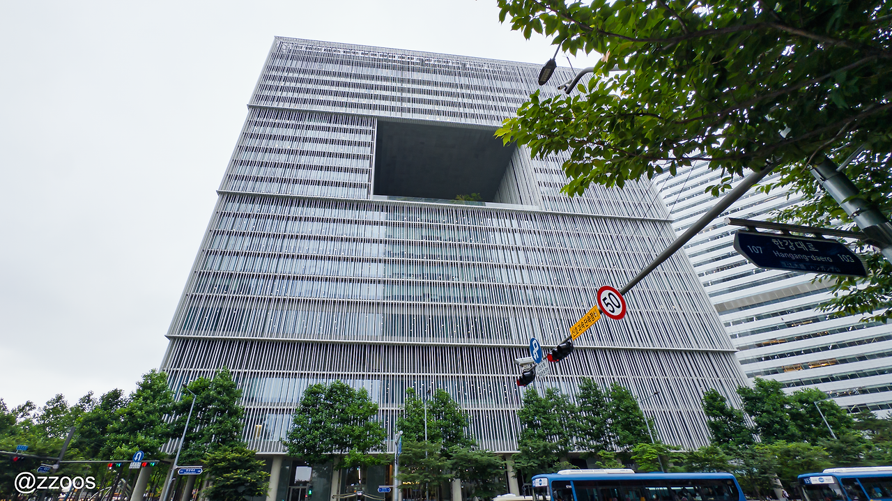 자, 이제 아모레퍼시픽 사옥에 도착했습니다. 이 건물의 건설 현장에 친구가 일을 한 적이 있어서, 이런저런 얘기를 들었던 건물입니다. 그래서 그런지 친근감마저 드는 건물. 하지만 오늘이 첫 번째 방문입니다. 사실 '사옥'이라고해서 방문할 수 있는 건물이라는 생각도 안 해봤었어요. 미술관이 있다고 하길래 좀 찾아보니 식당과 카페도 있더군요.