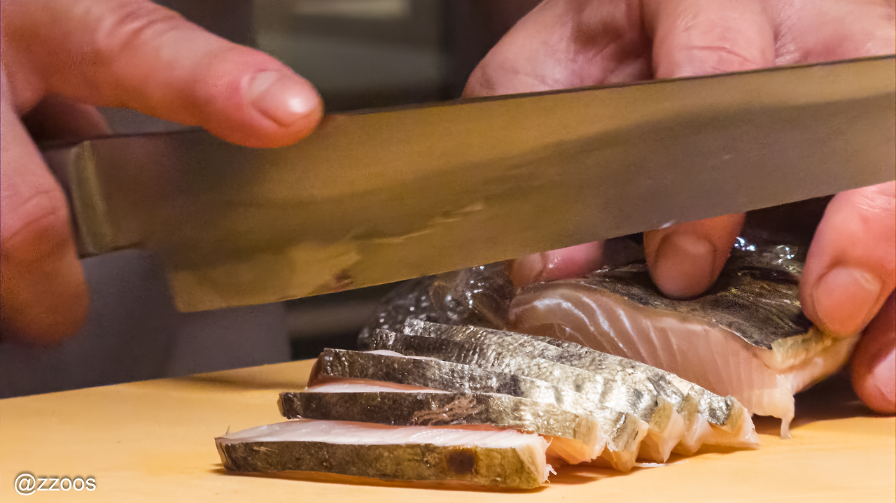 제가 요즘 '인디고'라는 새로운 카메라 앱을 쓰고 있는데요. 디지털 줌 성능을 체크해 보려고 삼치를 썰고 계신 모습을 줌으로 찍어봤습니다.