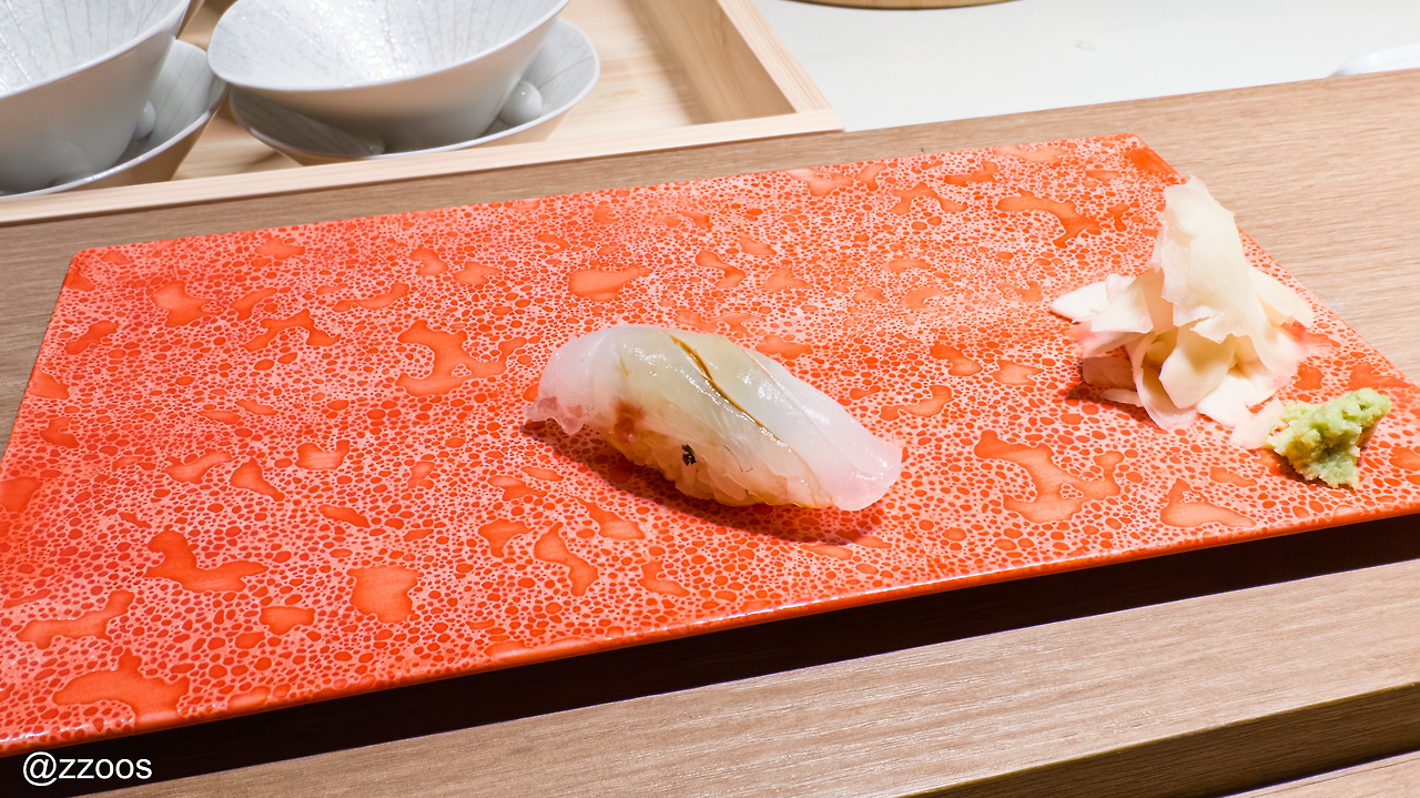 그렇게 나온 두 번째 스시는 자연산 타이(도미). 사실 뭐 큰 감흥은 없었습니다. 뭐, 도미가 도미죠 뭐.