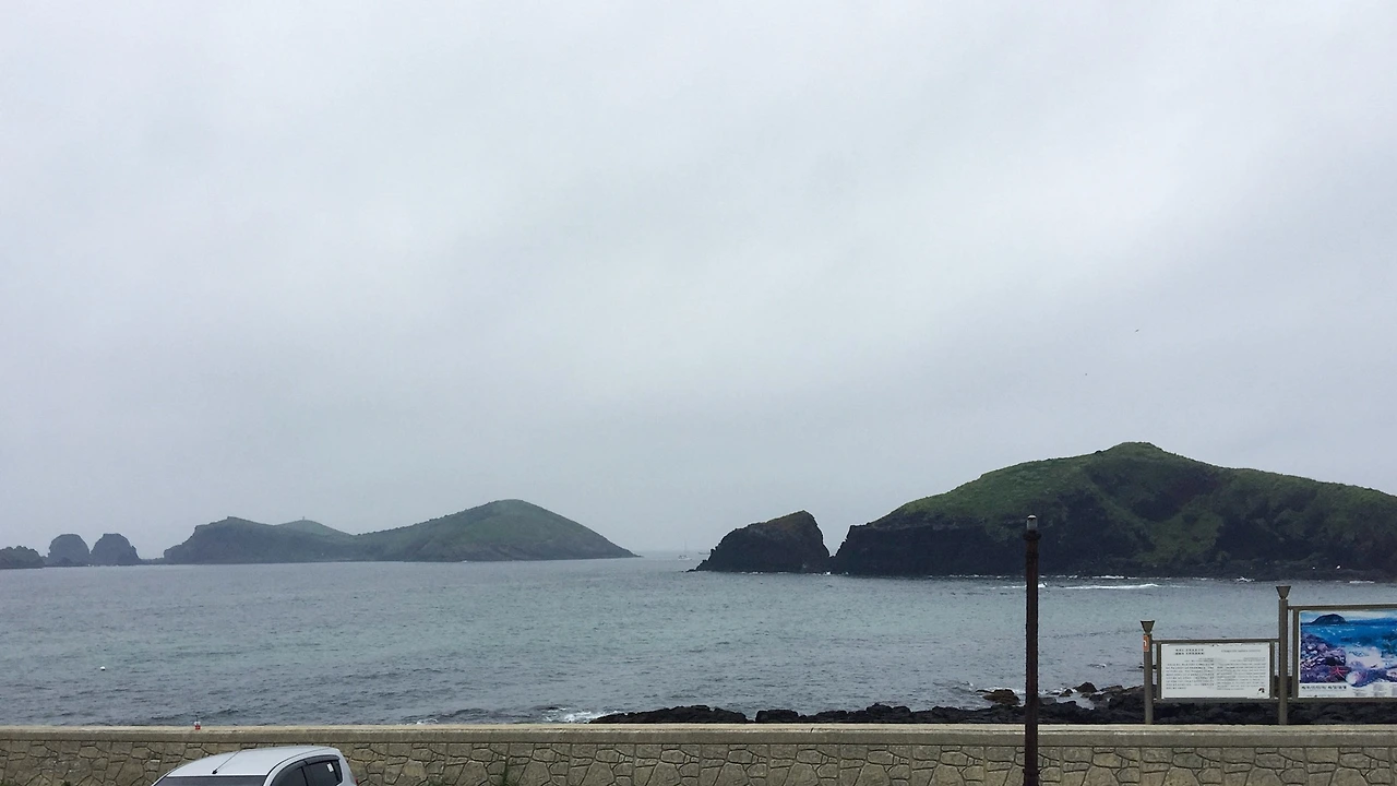 기억이 정확하다면 산방산을 넘어 서귀포 방면으로 들어갈 때 비가 좀 뿌렸던 것 같다. 평평했던 제주의 길이 갑자기 급경사로로 변해서 놀랬는데, 비까지 뿌리니 두 배로 깜놀.