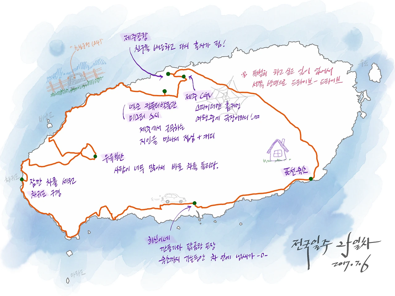 제주에 놀러 왔던 친구들을 모두 서울로 올려 보내고 나니 갑자기 휑~ 해진 느낌이 들었습니다. 어차피 혼자서 여행하던 중이었는데, 며칠 왁자지껄하게 지냈더니 금세 거기에 익숙해졌나 봅니다. 혼자 남으니 뭔가 허전한 느낌. 특별히 하고 싶은 것도, 가고 싶은 곳도 없어졌습니다. 뭘 해야 될지 잘 모르겠더라고요.