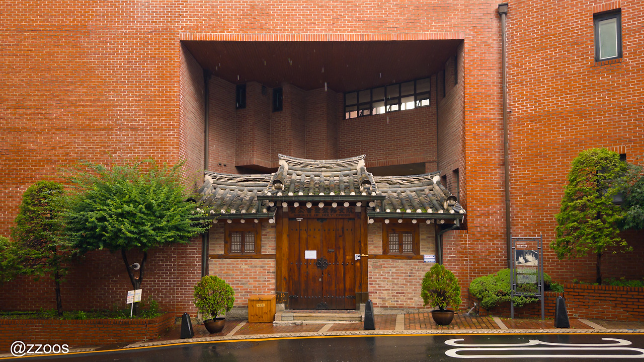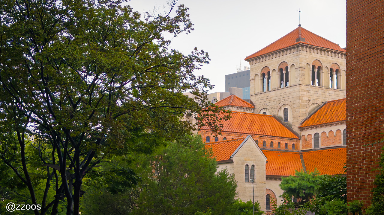 편의점에서 우산을 하나 사서 덕수궁길을 따라 계속 걷다가 덕수 초등학교 앞에서 억수같이 퍼붓는 비를 피해 20분 정도 처마 밑에 서 있었습니다. 계속 이럴 수는 없을 것 같아서 그 퍼붓는 비를 뚫고 계속해서 걷다가 결국 성공회 성당 앞까지 오게 됐어요.