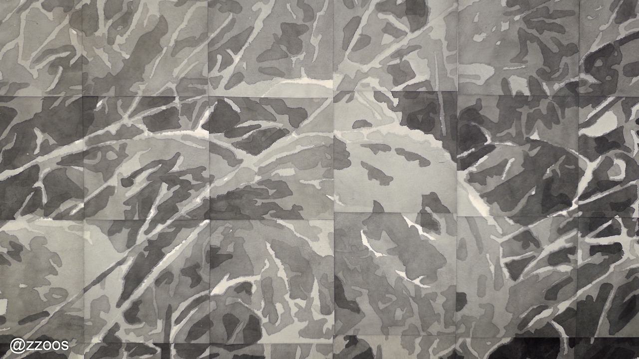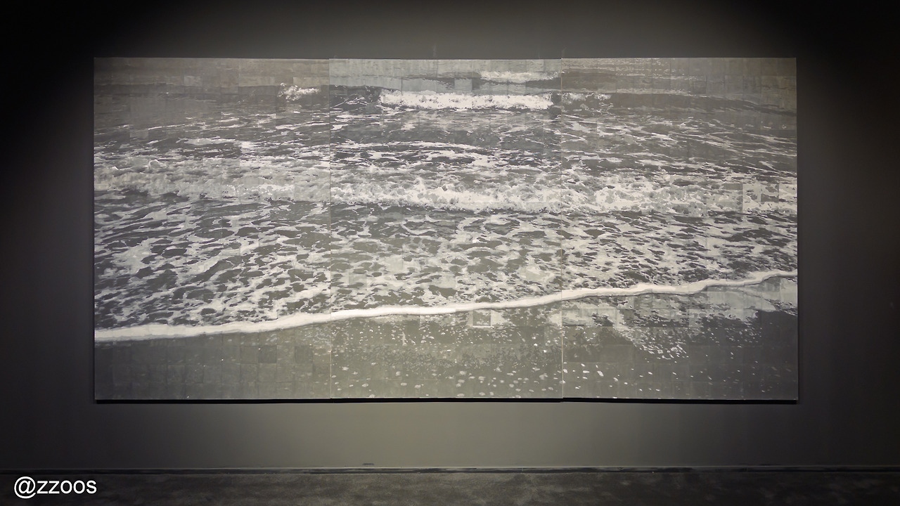 다른 작품들은 처음 보는 것이었지만 권세진 작가의 작품은 예전에 어디선가 본 적이 있습니다. 작은 정방형의 화선지에 먹으로 그린 그림들을 이어 붙이면 커다란 작품이 되는 특별한 작업 방식입니다. 화선지와 먹이 주는 부드러운 느낌과 정방형의 픽셀들이 모여서 전체를 만드는 디지털 이미지의 느낌이 섞여서 독특합니다.