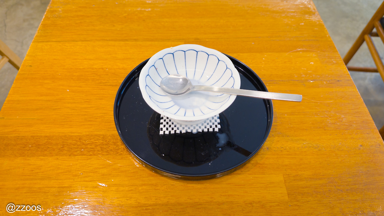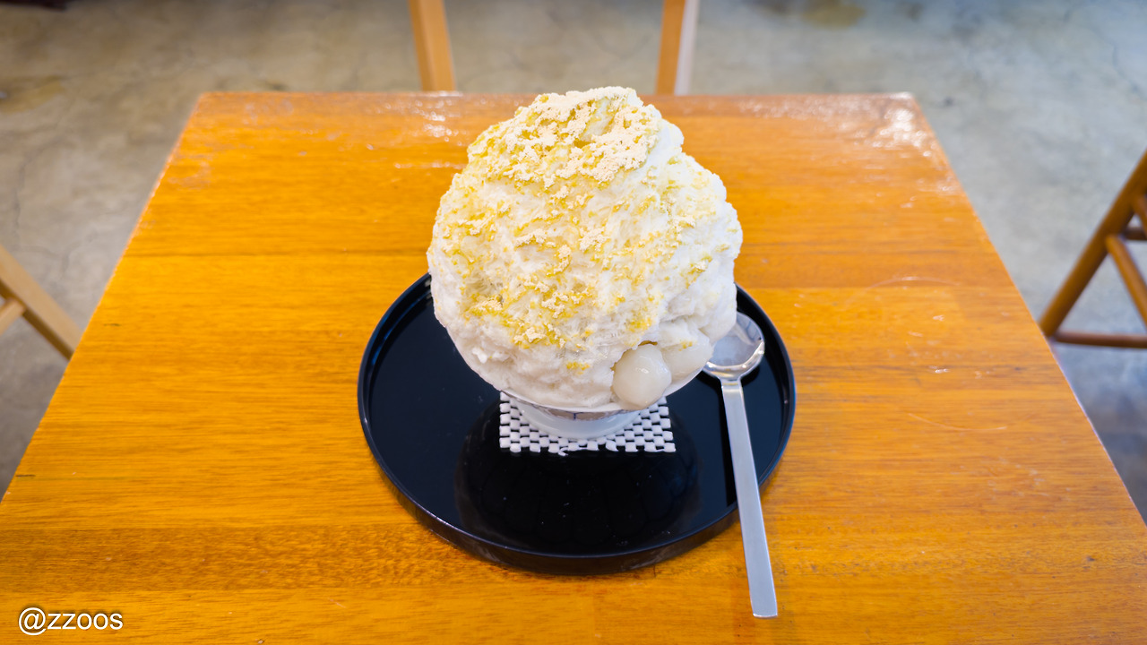 빙수의 종류가 아주 많은 가게였습니다. 이 가게의 시그니처가 뭔지 몰라서 일단 가장 기본이라고 생각하는 팥빙수를 주문했어요. 작은 그릇에 엄청난 양의 얼음가루가 담긴 것이 나왔습니다. 조심해서 퍼먹어야 했어요.