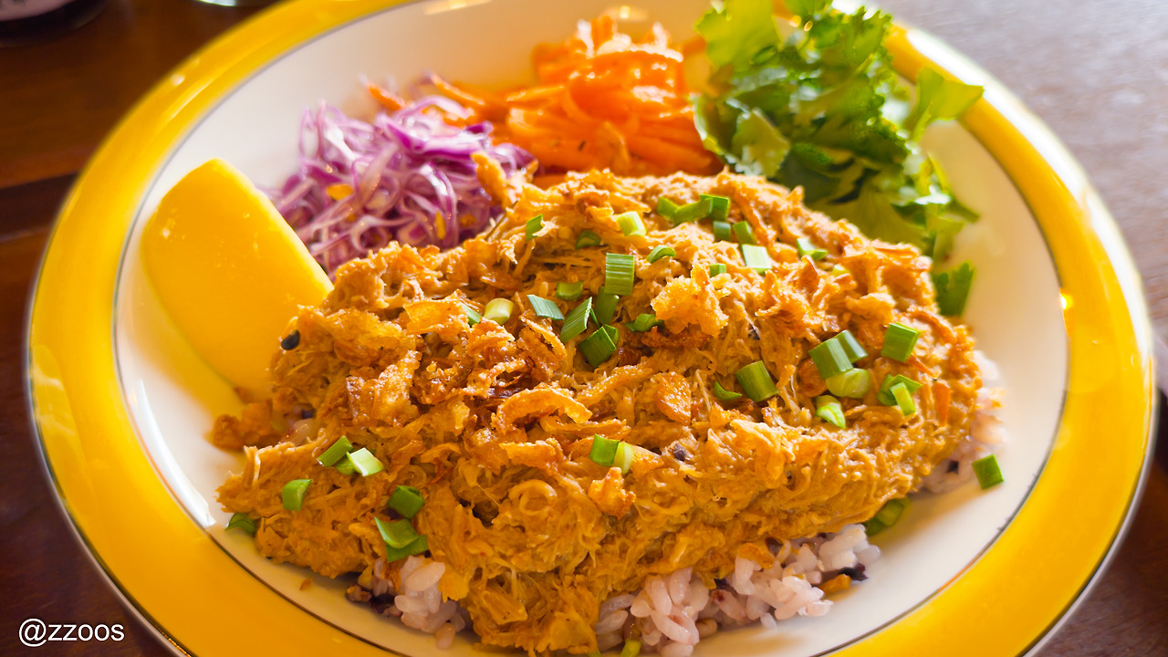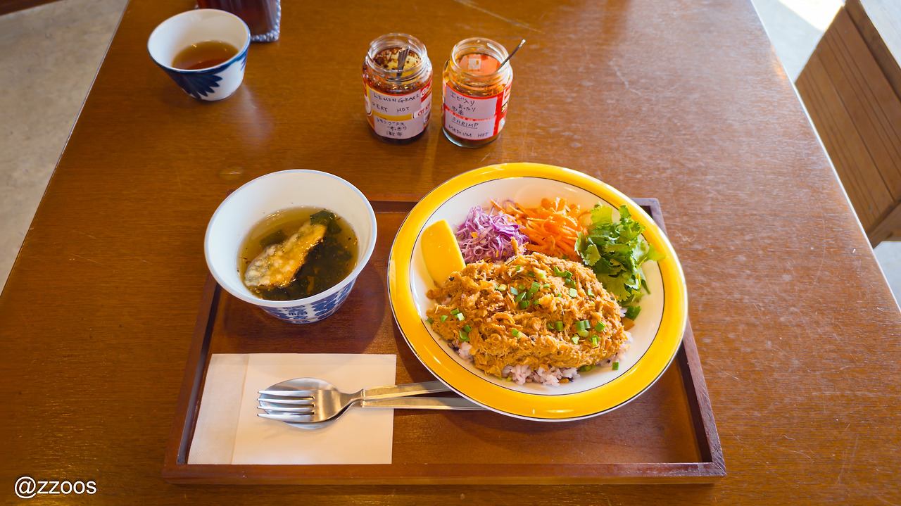 솔직히 밥 위에 올린 그 '시구레니'는 좀 짠 편이라서 야채를 적절하게 섞어서 밸런스를 잘 맞춰 먹어야 했습니다. 특히 고수와 함께 먹으면 더 좋았고, 당근 라페랑 같이 먹는 것도 괜찮았습니다. 매콤한 소스를 더해서 먹어보기도 했는데, 굳이 그럴 필요는 없겠더라고요.