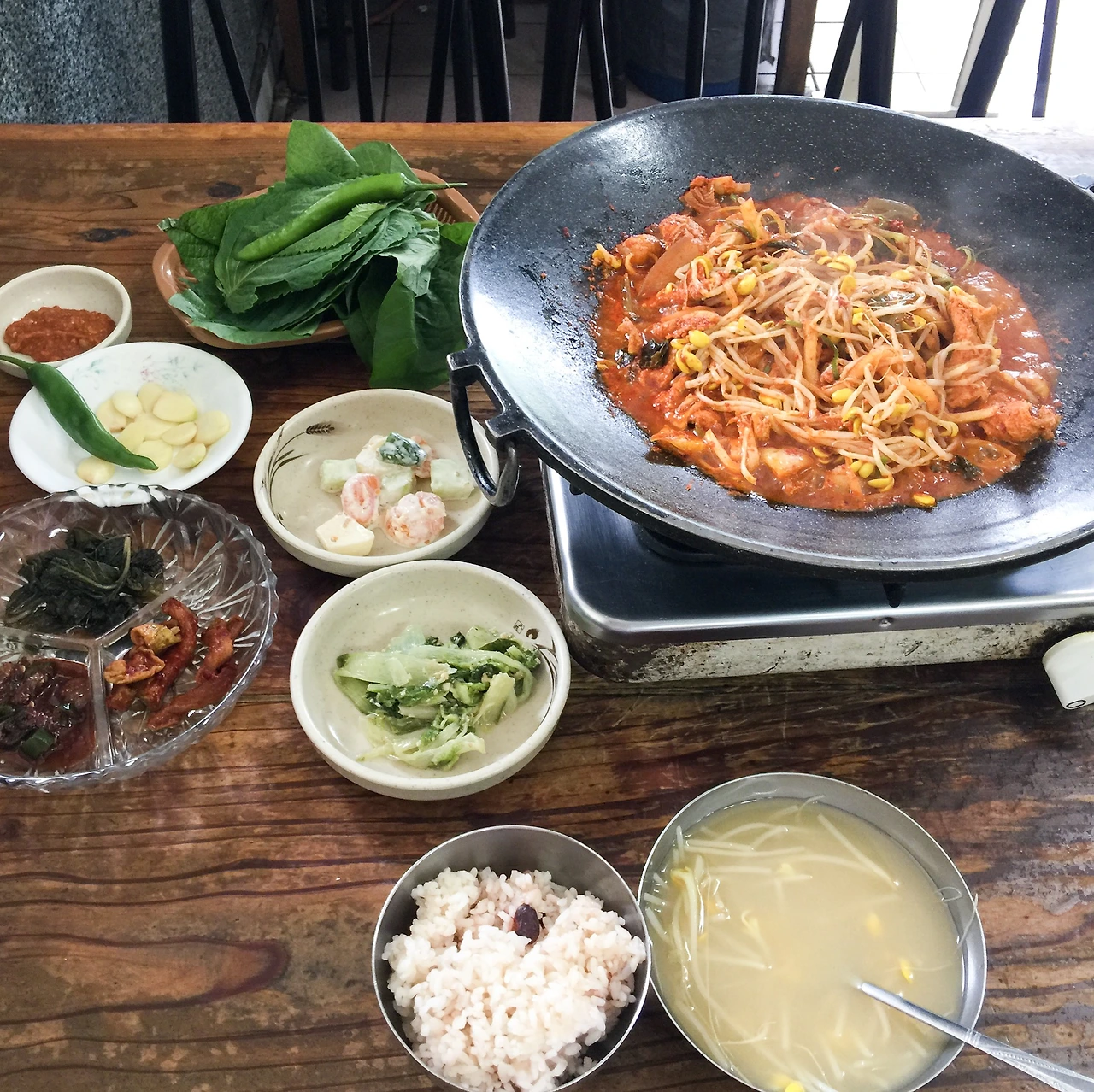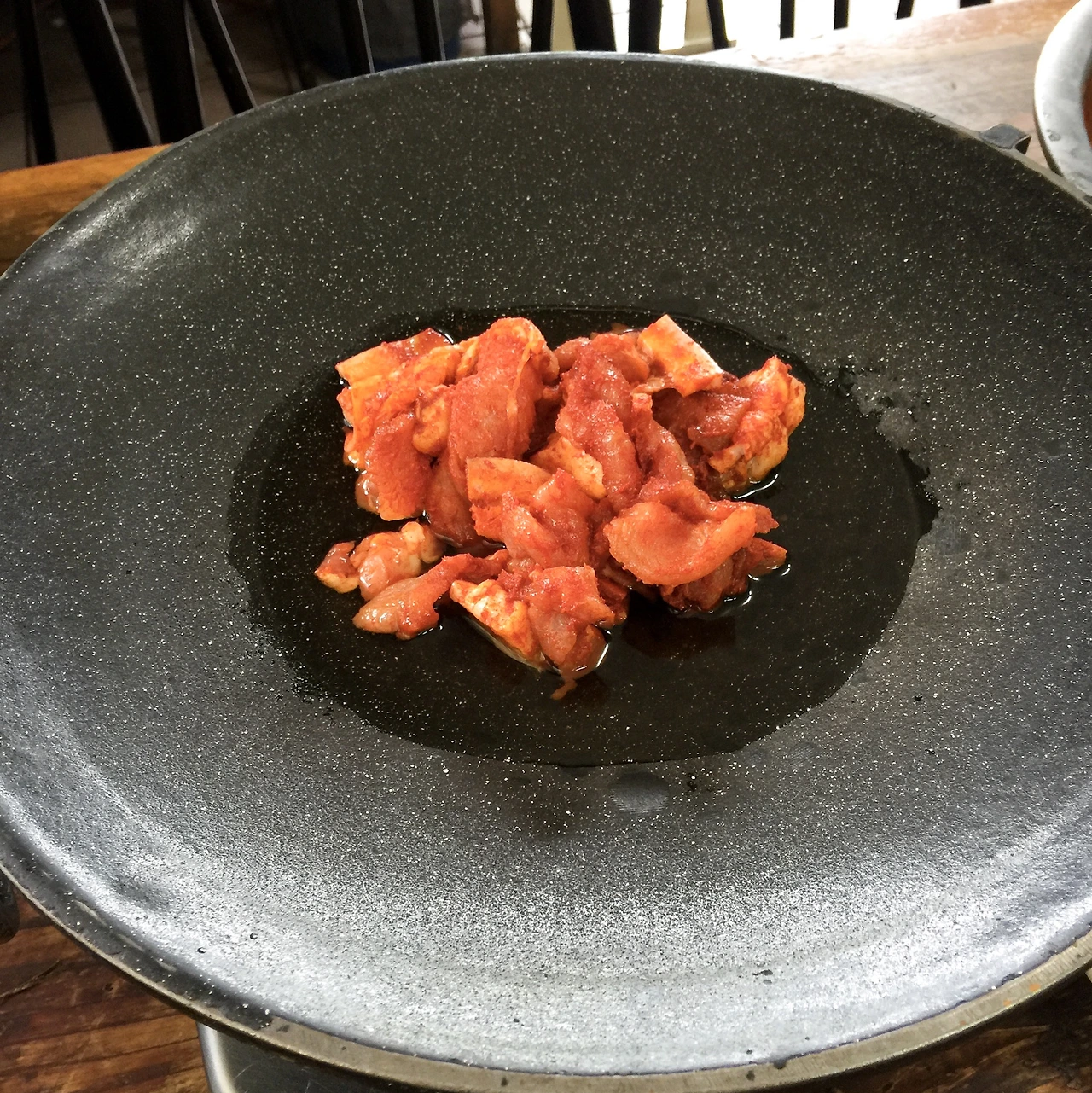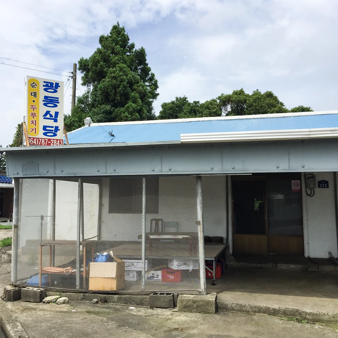 숙소에서 산길을 달려 10분 정도의 거리. 도저히 식당 같은 건 없을 것 같은 동네에서 광동식당(↗)을 찾을 수 있었다. 이곳은 특이하게 사람 수대로 계산을 하고 나면 두루치기는 알아서 맘껏 먹을 수 있는 시스템이었다. 물론 나는 입이 짧기 때문에 '무제한'이라는 것에 끌려서 이곳에 온 건 아니었지만.