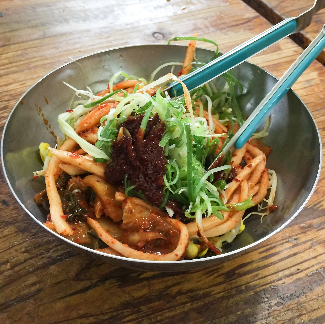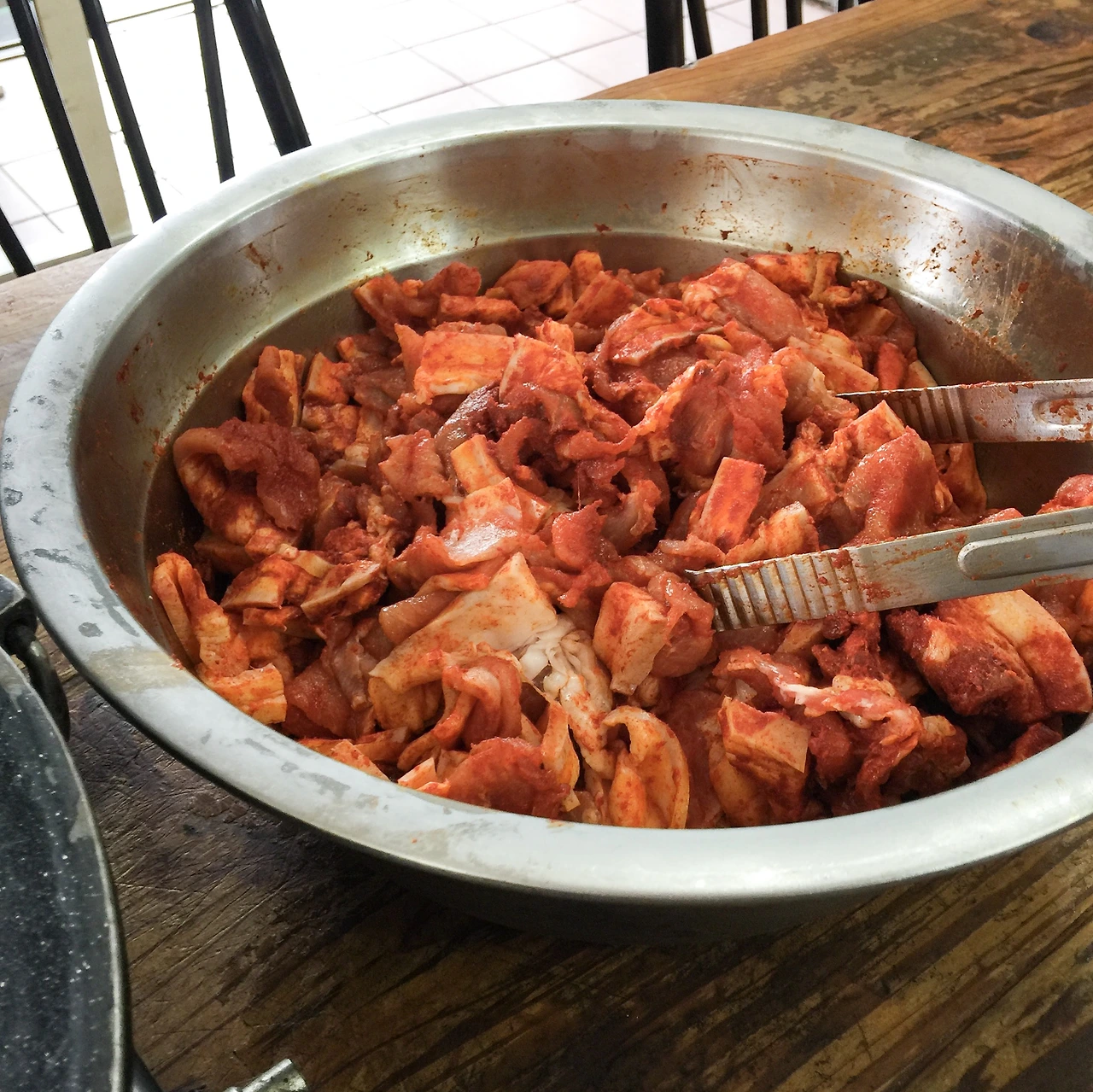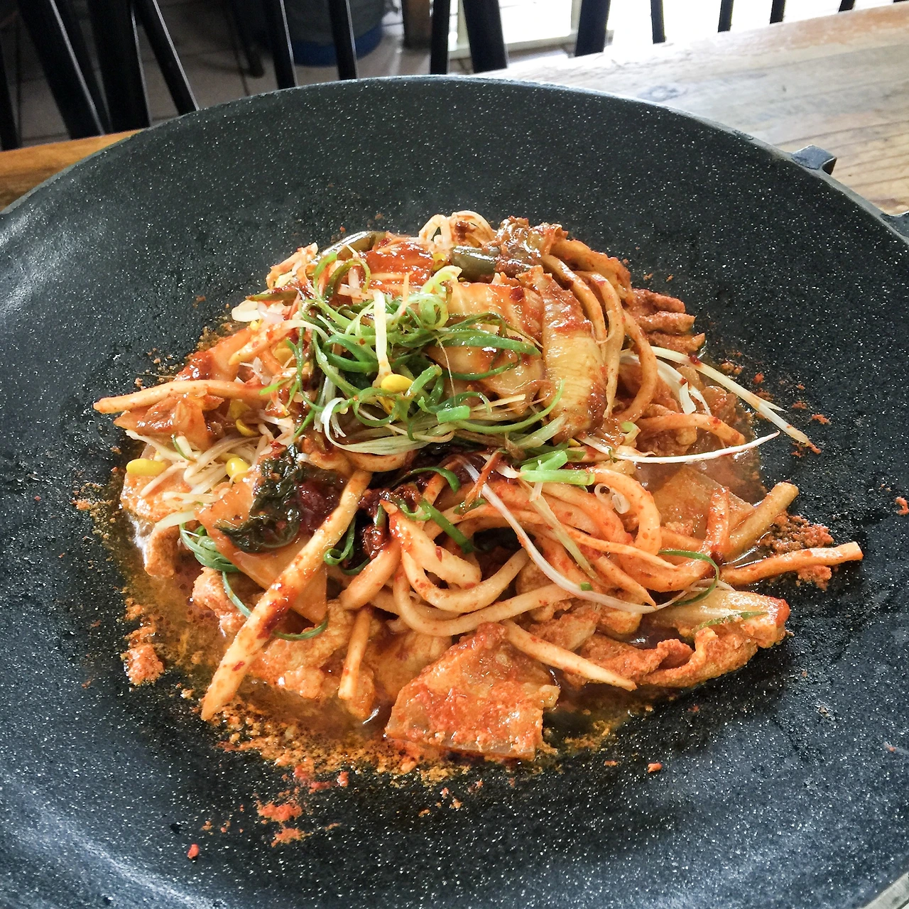 숙소에서 산길을 달려 10분 정도의 거리. 도저히 식당 같은 건 없을 것 같은 동네에서 광동식당(↗)을 찾을 수 있었다. 이곳은 특이하게 사람 수대로 계산을 하고 나면 두루치기는 알아서 맘껏 먹을 수 있는 시스템이었다. 물론 나는 입이 짧기 때문에 '무제한'이라는 것에 끌려서 이곳에 온 건 아니었지만.