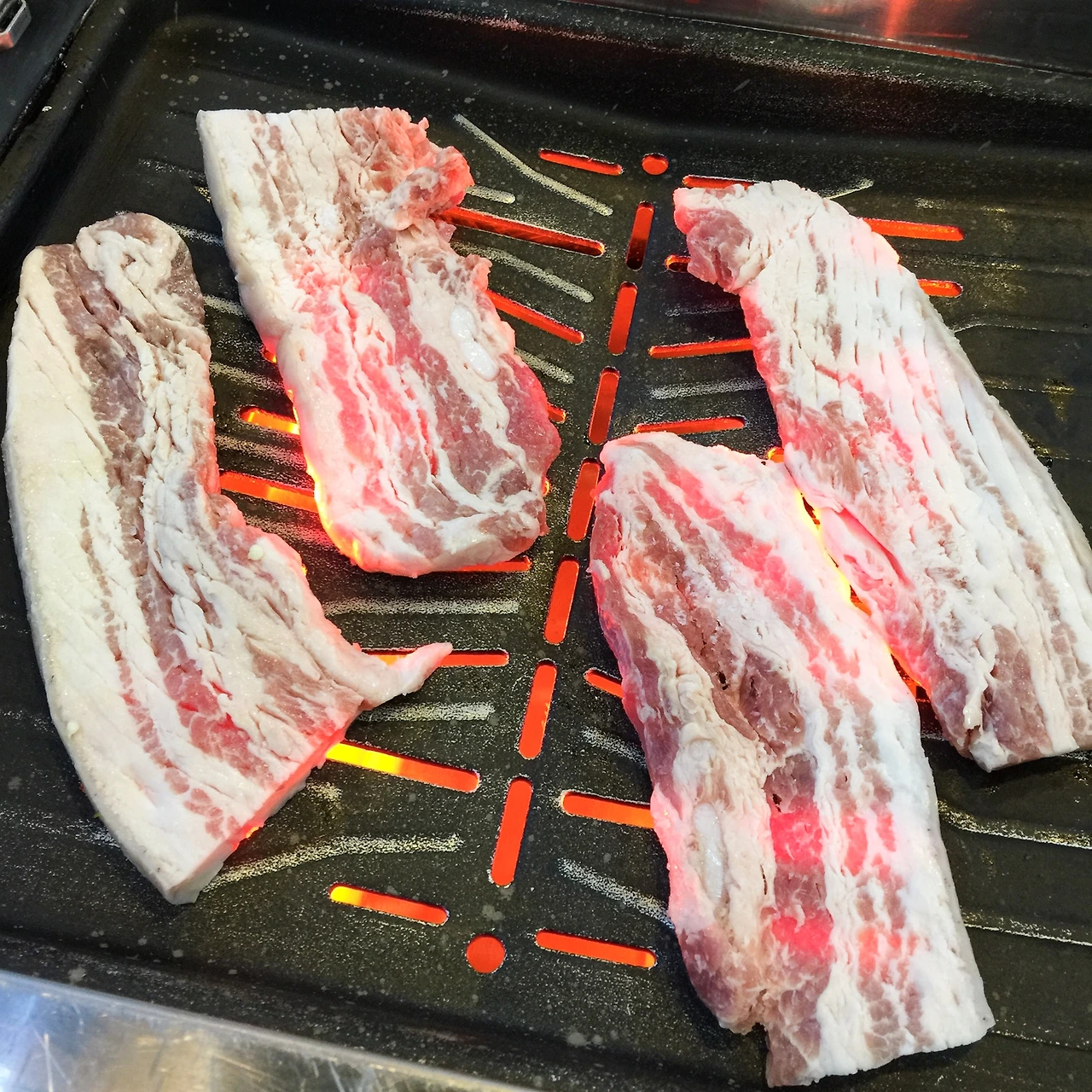 처음에 주신 고기 그릇(?)에서 먹을 만큼 고기를 덜어 불판에 올려두고 어느 정도의 시간이 지나면, 엄청 맛있을 것 같은 야채와 양념을 내주신다. 야채들을 불판에 올려 고기와 함께 볶으면 엄청 맛있는 냄새가!