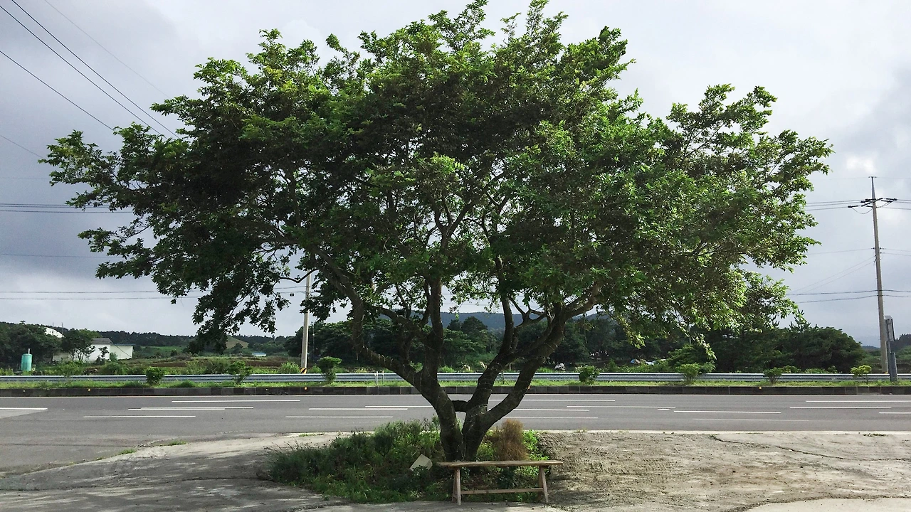 매콤하고 빨간 음식을 잔뜩 먹고 나니 입가심을 하고 싶어서 표선에서 제주시로 넘어가는 큰 길가에 있는 허브올레(↗)라는 카페로. 그곳 마당에 있던 커다란 나무. 여기서 한두 시간 정도 허브차를 마시면서 여행 중간의 일기와 메모들을 정리했다.