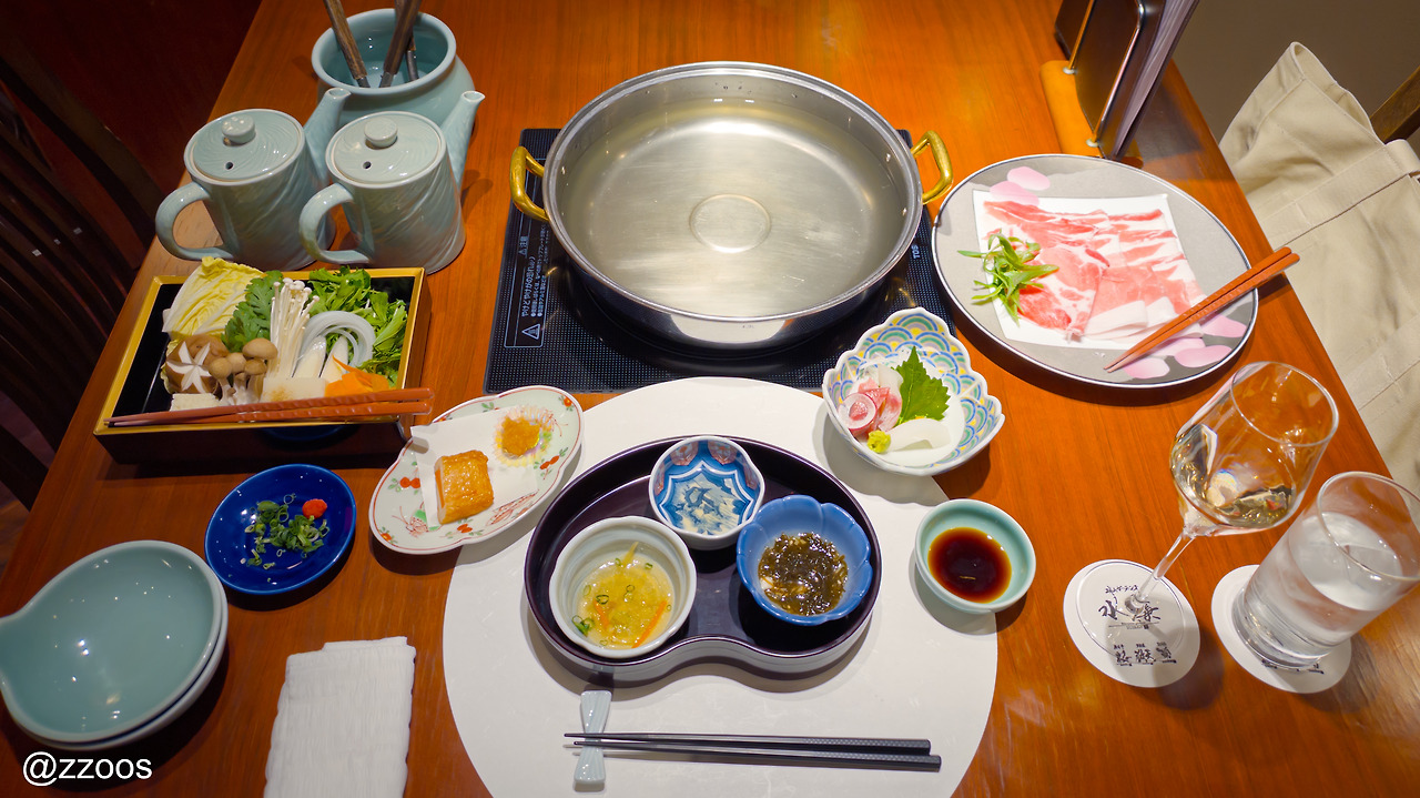 제가 알기론 가고시마도 간사이식 스키야키를 하는 걸로 알고 있는데요. 그렇다면 달콤한 소고기를 먹을 수 있겠죠. 하지만 가고시마 쿠로부타를 얇게 썰어 육수에 익히면 고소한 지방의 맛이 극대화되는 샤부샤부를 포기할 수도 없었습니다.