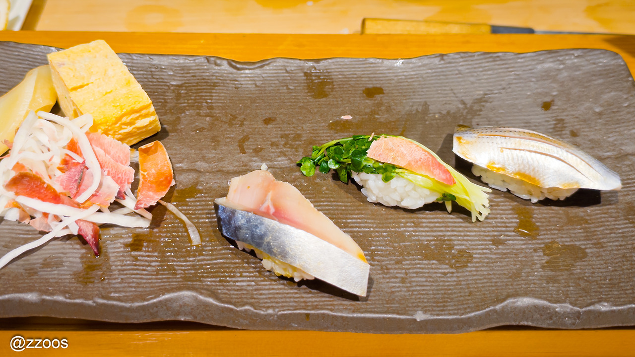 마지막으로 사진을 찍지 못한 테마끼(손말이 초밥)를 끝으로 스시는 끝났습니다. 사진과 메모를 참고해서 세어보니 총 20점이었네요. 짧은 코스로 예약하길 잘했습니다. 이 정도로 충분히 배가 불러요. 스시와 요리까지 나왔다면 아마 다 먹지 못했을 겁니다.