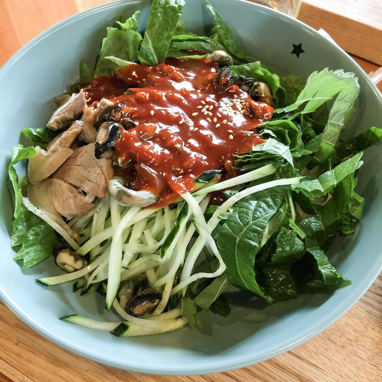 보말 비빔국수. 면과 채소의 양 그리고 양념장 등등 빠지는 것이 없는 맛있는 국수였는데, 굳이 '보말'을 썼어야 했는지가 의문. 혹시 양념장에 보말 육수를 사용했다면 그것을 눈치채지 못한 나의 미각이 문제. 어쨌든 보말과 국수가 따로 놀아서 조금은 섭섭했던 국수다. 다시 말하지만 맛이 없다는 얘기는 아님.