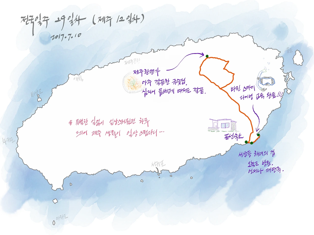 교육을 마쳤으니 이제 펀 다이빙을 한 번 나가야 하지 않겠냐고 하셔서 너무너무 나가보고 싶다고 했더니, 그럼 내일 범섬 쪽으로 스케줄을 잡아 보시겠단다. 그러니 오늘 너무 술 많이 마시지 말라고 ㅋㅋㅋ
