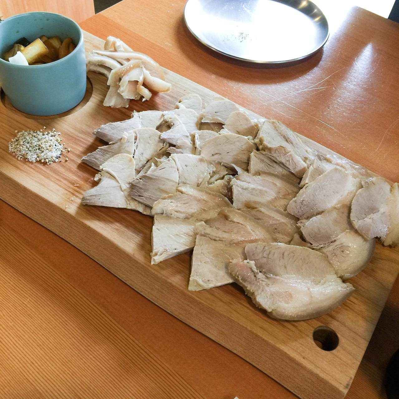 일단 돔베고기를 주문. 보기에는 막 썰어낸 것처럼 보이지만 맛이 아주 깔끔하다. 그렇다고 해서 살코기만으로 퍽퍽하진 않고 기름과 살코기의 밸런스도 좋다. 사진에는 고기가 많이 말라 보이지만 실제로는 촉촉한 느낌도 나쁘지 않았다. 하지만 제주에서 돔베고기를 처음 먹어보는 입장에서는 조금은 거칠더라도 할머니가 삶아주신 느낌의 고기도 먹어보고 싶긴 했다.