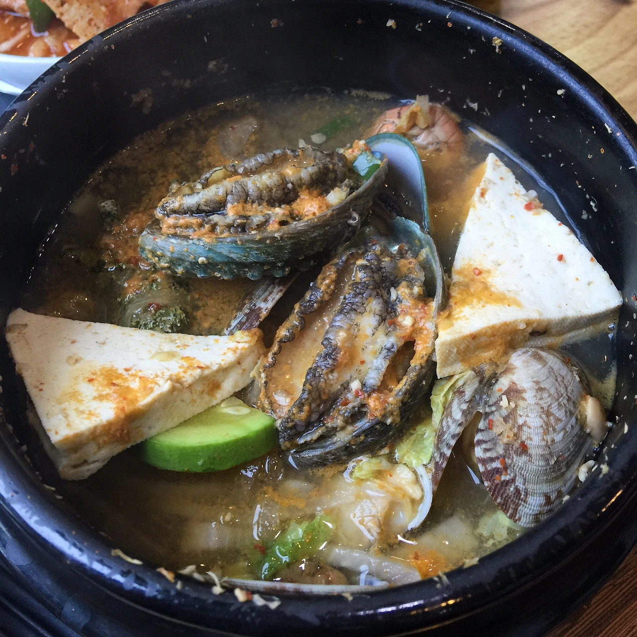 오늘의 메뉴는 해물뚝배기. 사실 그다지 좋아하는 음식은 아닌데(건더기 건져 먹는 게 귀찮은 사람의 입장에서는 일반적으로 가성비가 떨어진다고 생각한다), 사모님 음식 솜씨가 분명히 좋다는 걸 확인할 수 있었다.