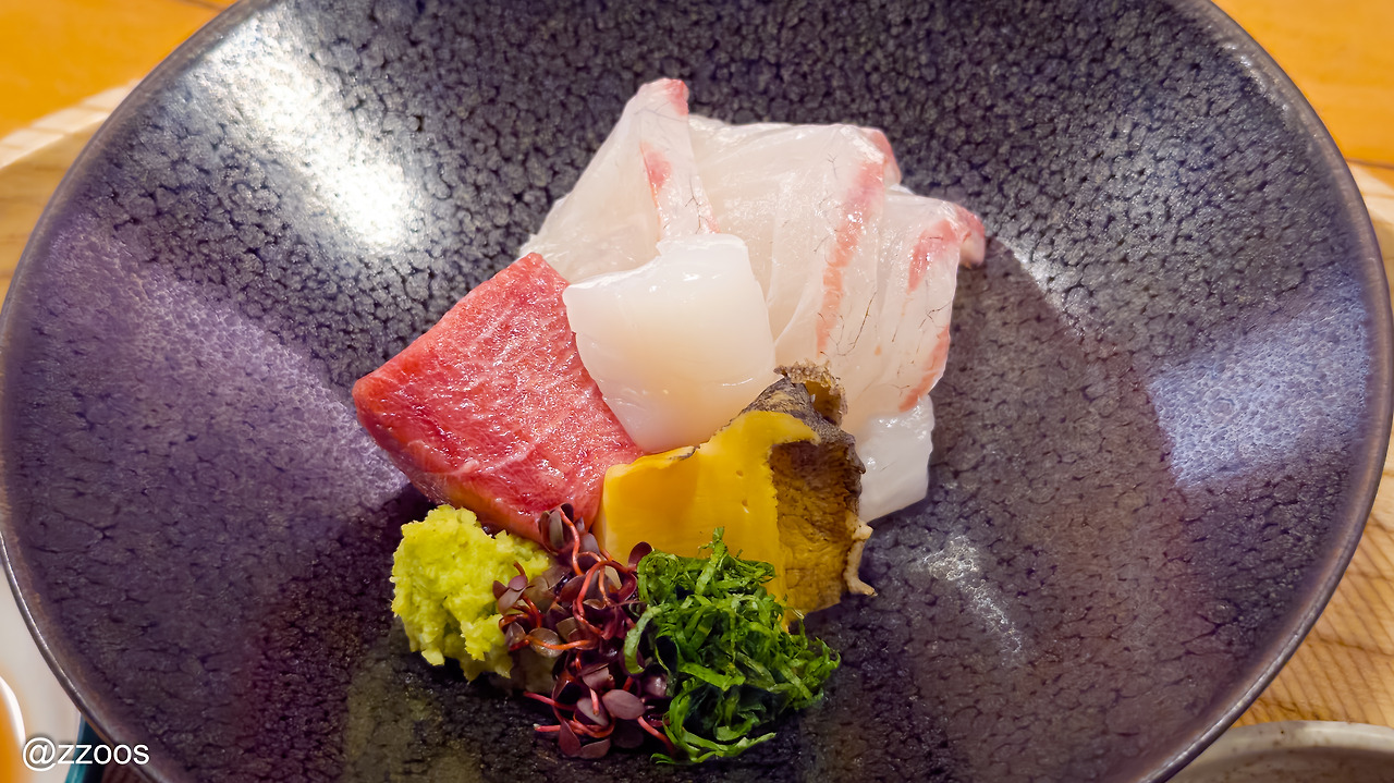 애피타이저 플레이트도 하나같이 맛있었어요. 아지 난반에서 아지의 향이 삭~ 올라온다던가, 장어 시라아에의 부드럽고 아삭한 식감 속에서 마지막에 느껴지는 카라스미, 부드러운 두부 위에 바른 미소 소스에선 시소의 향이 탁 쳐주고, 바삭한 식감까지. 재료를 섬세하게 다루고, 정성을 들였다는 것이 드러나는 요리들이랄까요.