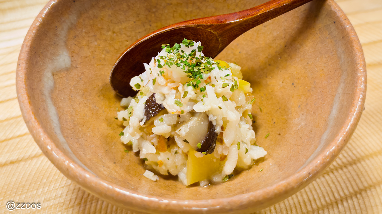 이거 정말 맛있었습니다. 송이의 향이야 두말할 것도 없고, 도미 베이스의 국물이 아주 깊습니다. 그리고 어떤 재료들을 사용했는지 모르겠지만 맛이나 향이 단순하지 않고 다채롭습니다. 마음에 쏙 드는 요리였어요.