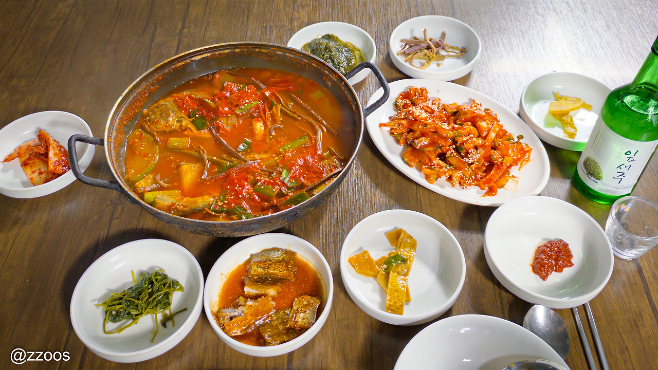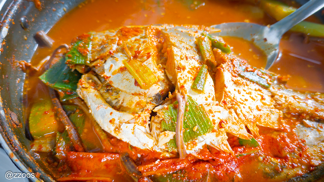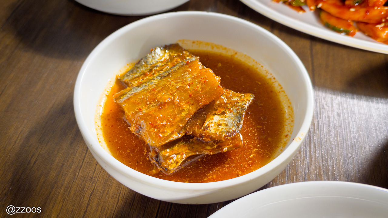 아무래도 병어는 여름이 제철인 생선이잖아요. 지금은 한 겨울이라서 냉동된 걸 쓰시는 것까지는 이해할 수 있습니다만, 그래도 냄새가 나는 건 좀. ㅠㅜ 살은 부드럽게 참 잘 익었습니다. 양념도 너무 맛있고, 야채들도 좋았어요. 그래서 좀 아쉬웠습니다.